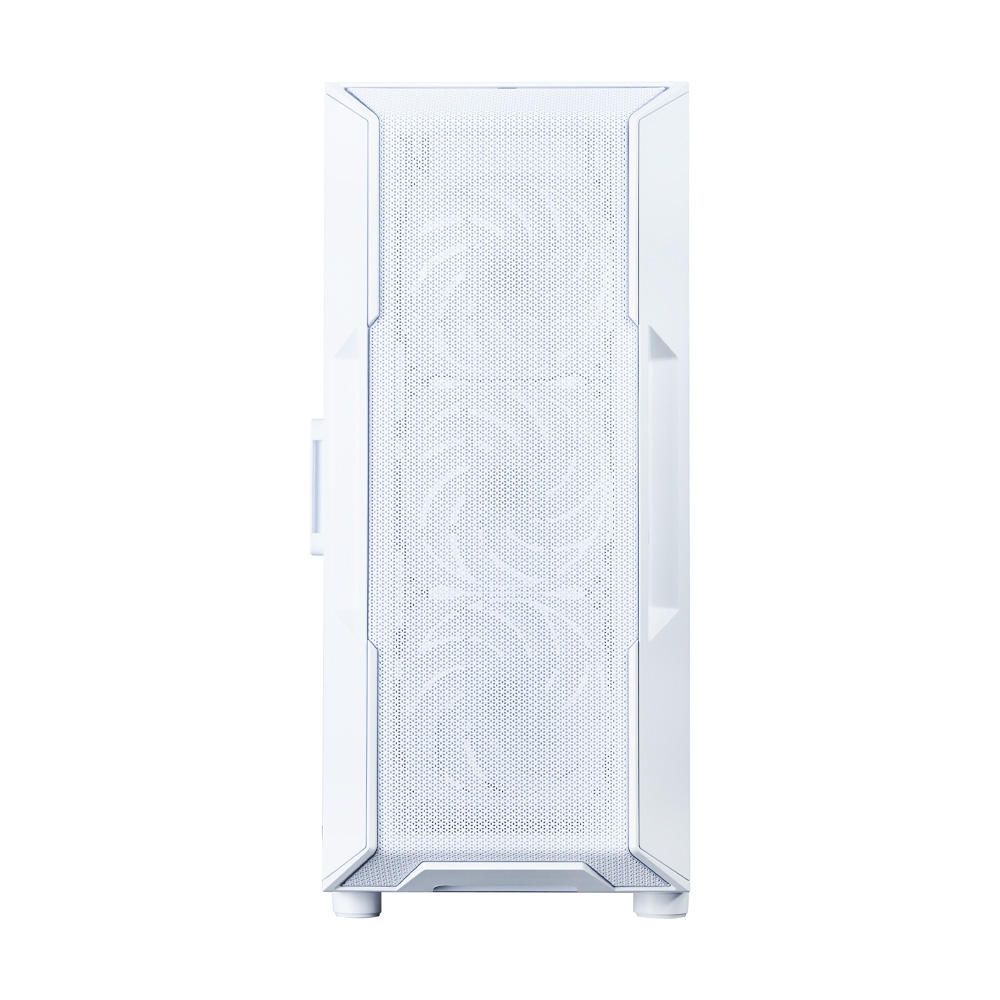 Передняя панель – металлическая сетка, для активной вентиляции, через которую просматривается свечение установленных вентиляторов.