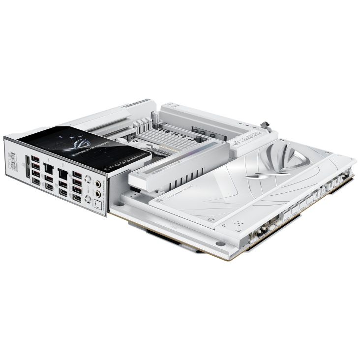 ROG CROSSHAIR X870E GLACIAL сочетает флагманскую производительность, расширенные возможности хранения и современные интерфейсы в белом дизайне с акцентом на охлаждение и удобство настройки. Подходит для создания высокопроизводительных систем, где сочетаются экстремальный разгон, большой объем быстрого хранилища и элегантный внешний вид.