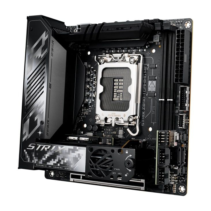 The ROG Strix Z890-I features a sleek, minimalist design that blends effortlessly with various system components. Its deep black PCB and metallic heatsinks give it a bold, intense look, while the L-shaped backplate adds both style and practical protection against sharp edges.