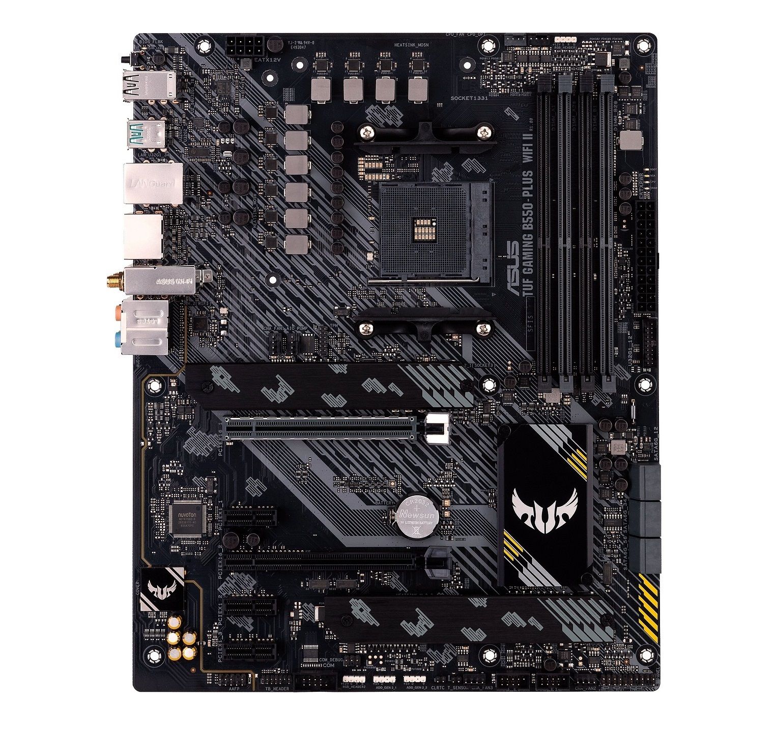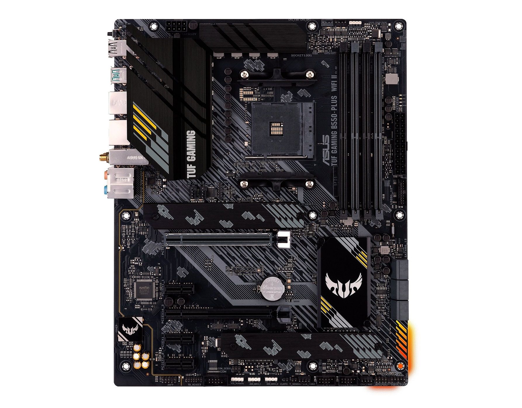 TUF GAMING B550-PLUS WIFI II provides a complete, high-performance gaming package with a long list of features to improve your experience, including ultrafast networking for smoother online gameplay, pristine audio with positional cues for FPS gaming, and onboard RGB lighting that syncs with attached accessories to help you create a personalized gaming atmosphere.