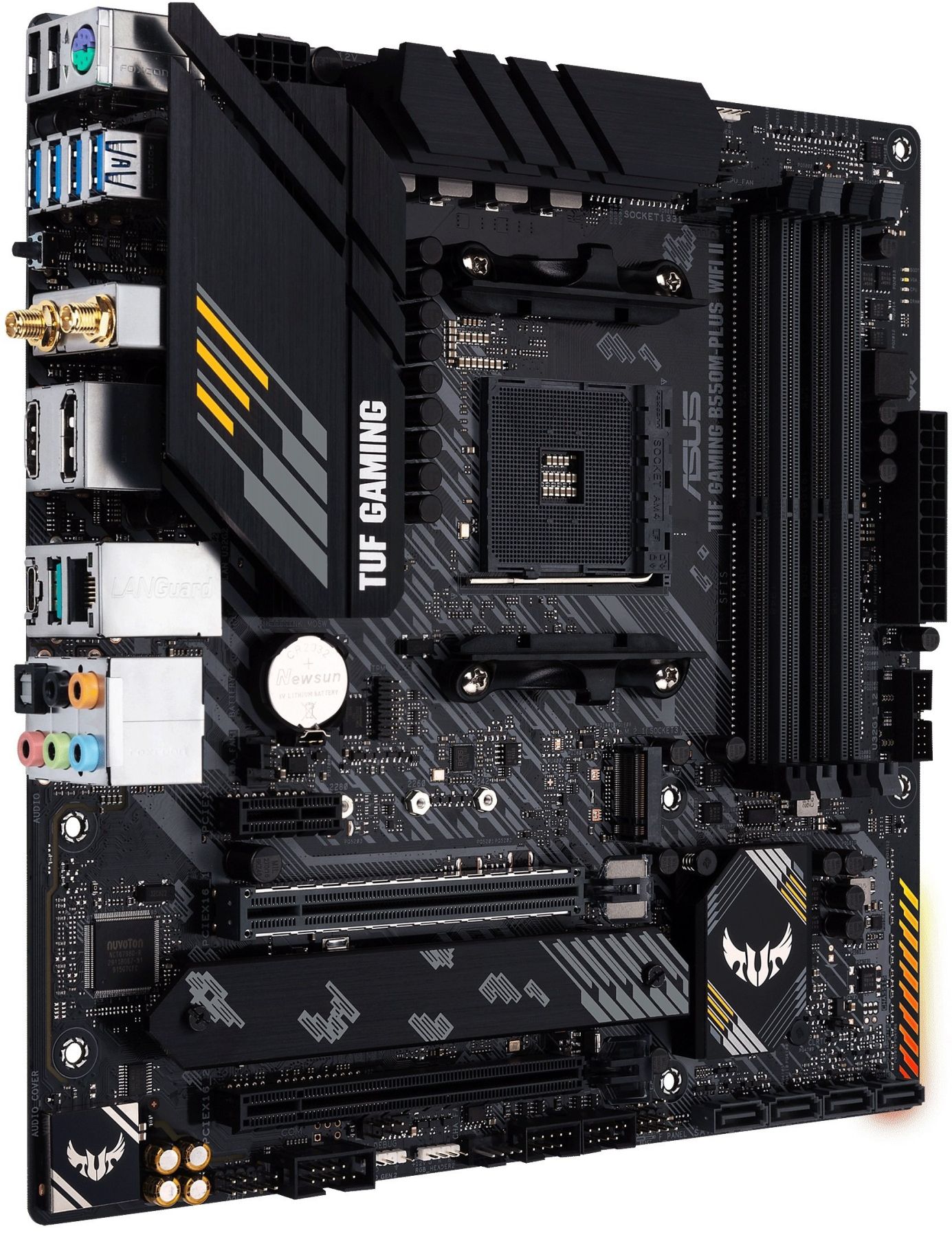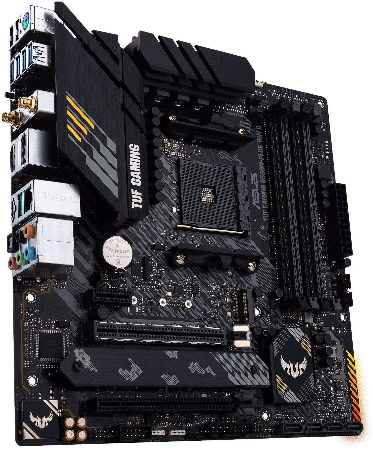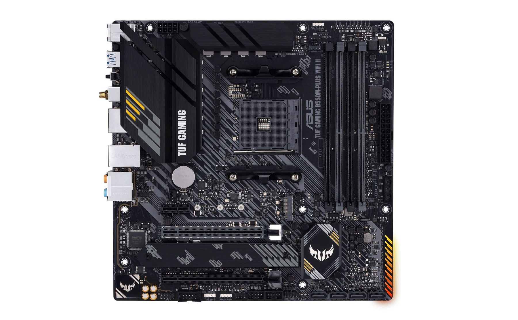 TUF Gaming B550M-Plus WIFI II provides a complete, high-performance gaming package with a long list of features to improve your experience, including ultrafast networking for smoother online gameplay, pristine audio with positional cues for FPS gaming, and onboard RGB lighting that syncs with attached accessories to help you create a personalized gaming atmosphere.