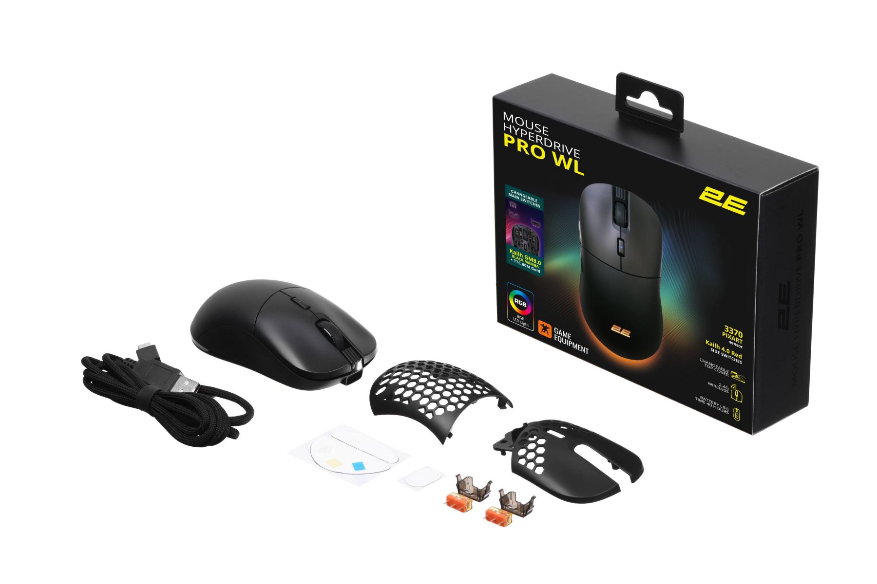 Мышь 2E GAMING HyperDrive Pro WL, RGB, USB-A/WL, чёрный