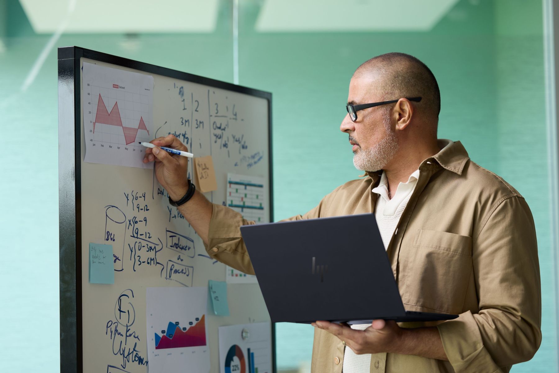 HP EliteBook Ultra G1i (B66VXAT) — тонкий ноутбук синего цвета с 14" сенсорным OLED-экраном для мобильной работы и творческих задач.