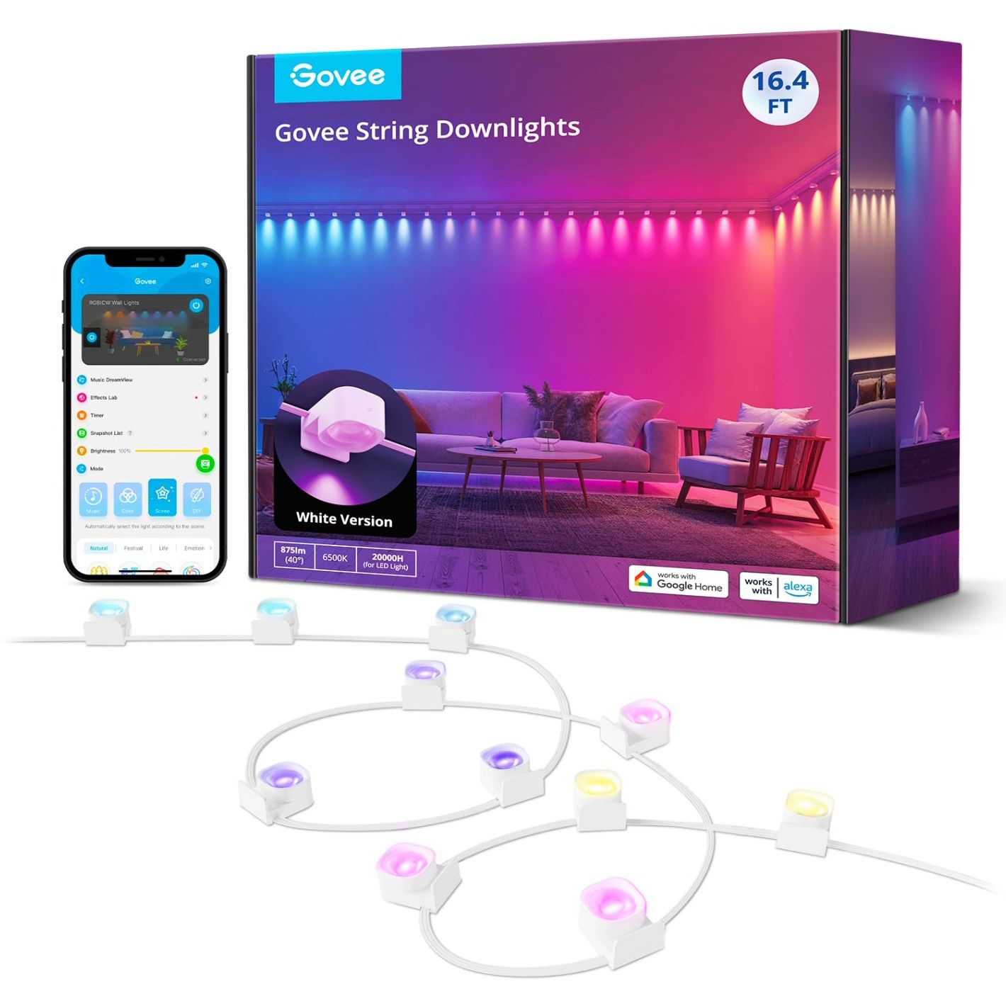 Лента светодиодная умная Govee H608A String Downlights, 5м, RGBIC, WI-FI/Bluetooth, Белый