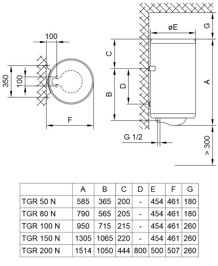 Водонагреватель Tiki TGR150NGV9 150 л, круглый, мех. упр-ние, С, 700174