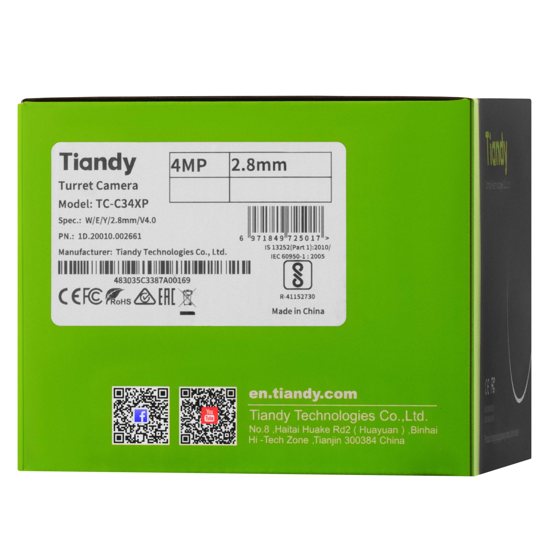 IP Camera : 4MP, Color Maker Turret, 2.8mm, f/1.0, LED 15m, DC 12V, PoE, IP67 Tiandy TC-C34XP