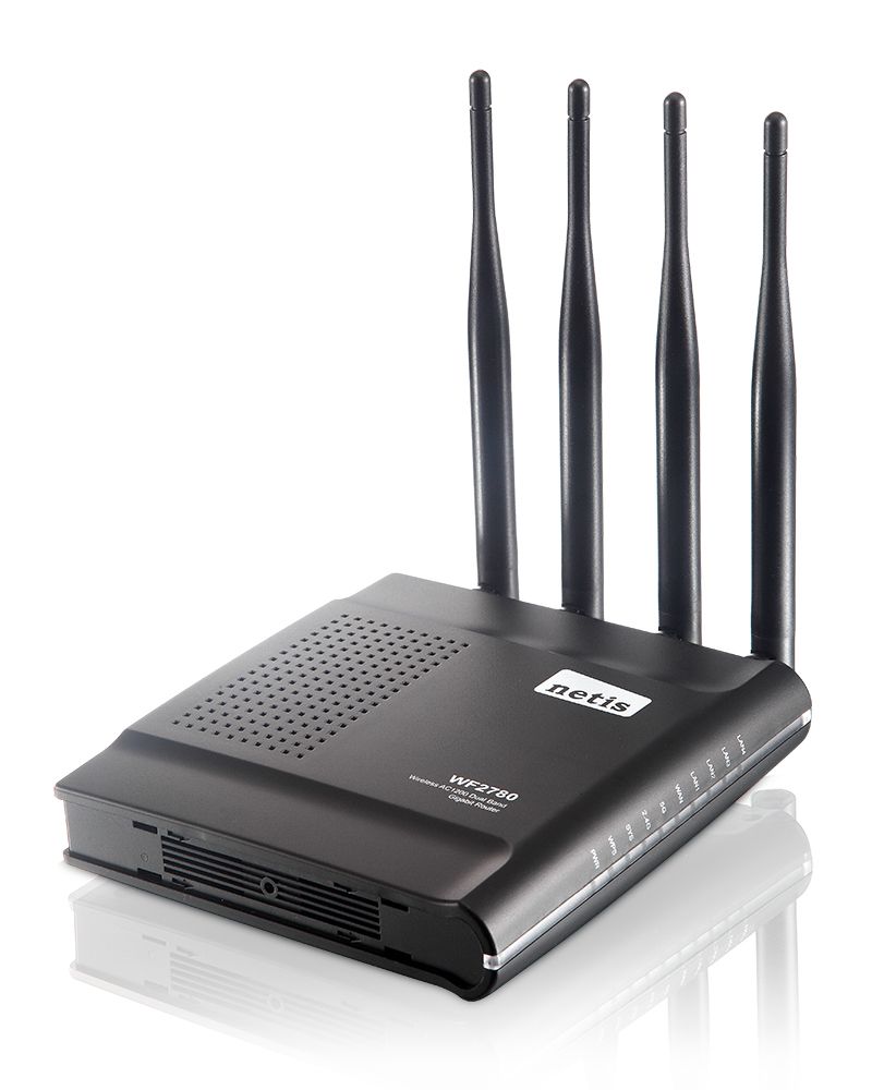AC1200 Wireless Dual Band Gigabit Netis Router WF2780 delivers next generation Wi-Fi at Gigabit speeds.With simultaneous dual band Wi-Fi technology, it offers speeds up to 2.4GHz 300Mbps + 5GHz 867Mbps and avoids interference, ensuring top Wi-Fi speeds and reliable connections. This makes it ideal for larger homes with multiple devices. In addition, WF2780 provides Gigabit wired connectivity, which is 10 times faster than conventional Fast Ethernet connections, best for high speed file transfers and streaming HD media