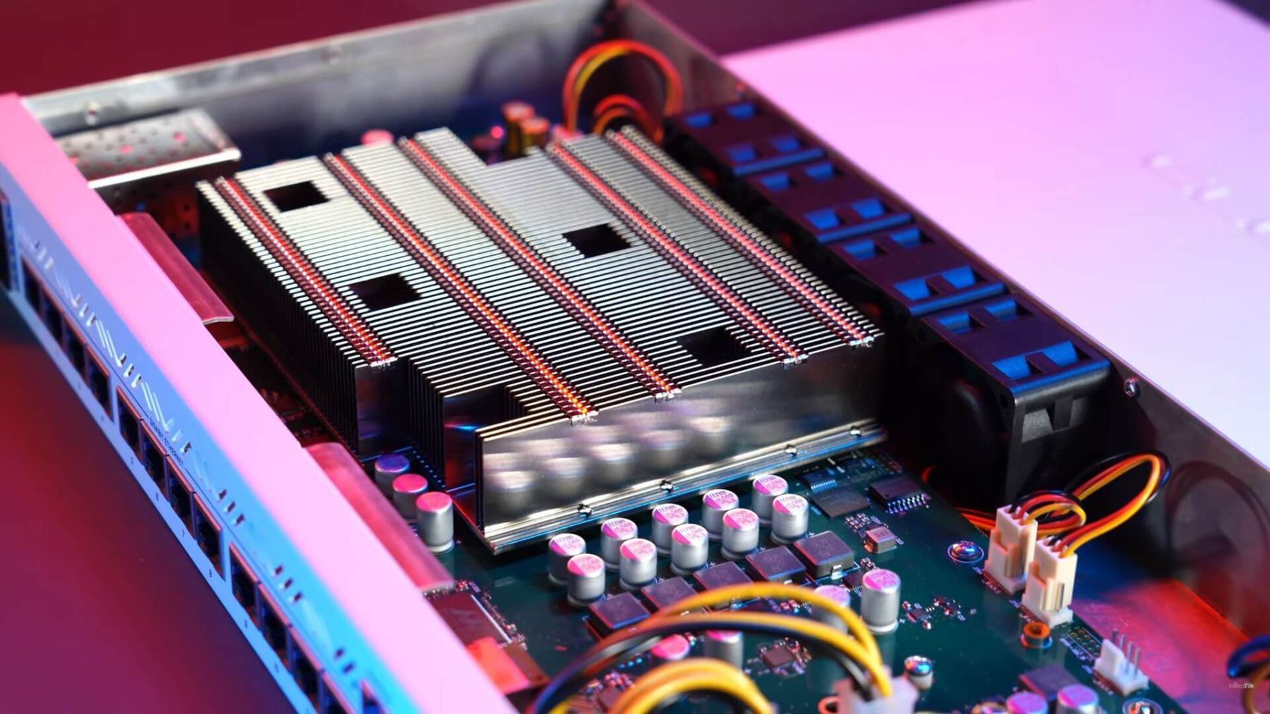 Each group of 4 ports has a separate full-duplex connection to the switch chip. No bottlenecks here. You can expect switch-like throughput in most setups. The new generation of processors offers mind-blowing performance. If we look at the CCR1036 - the powerhouse with a 36 core CPU, the new CCR2116 can easily double the performance. 16 cores vs 36 cores. Double the performance. Or even more.
