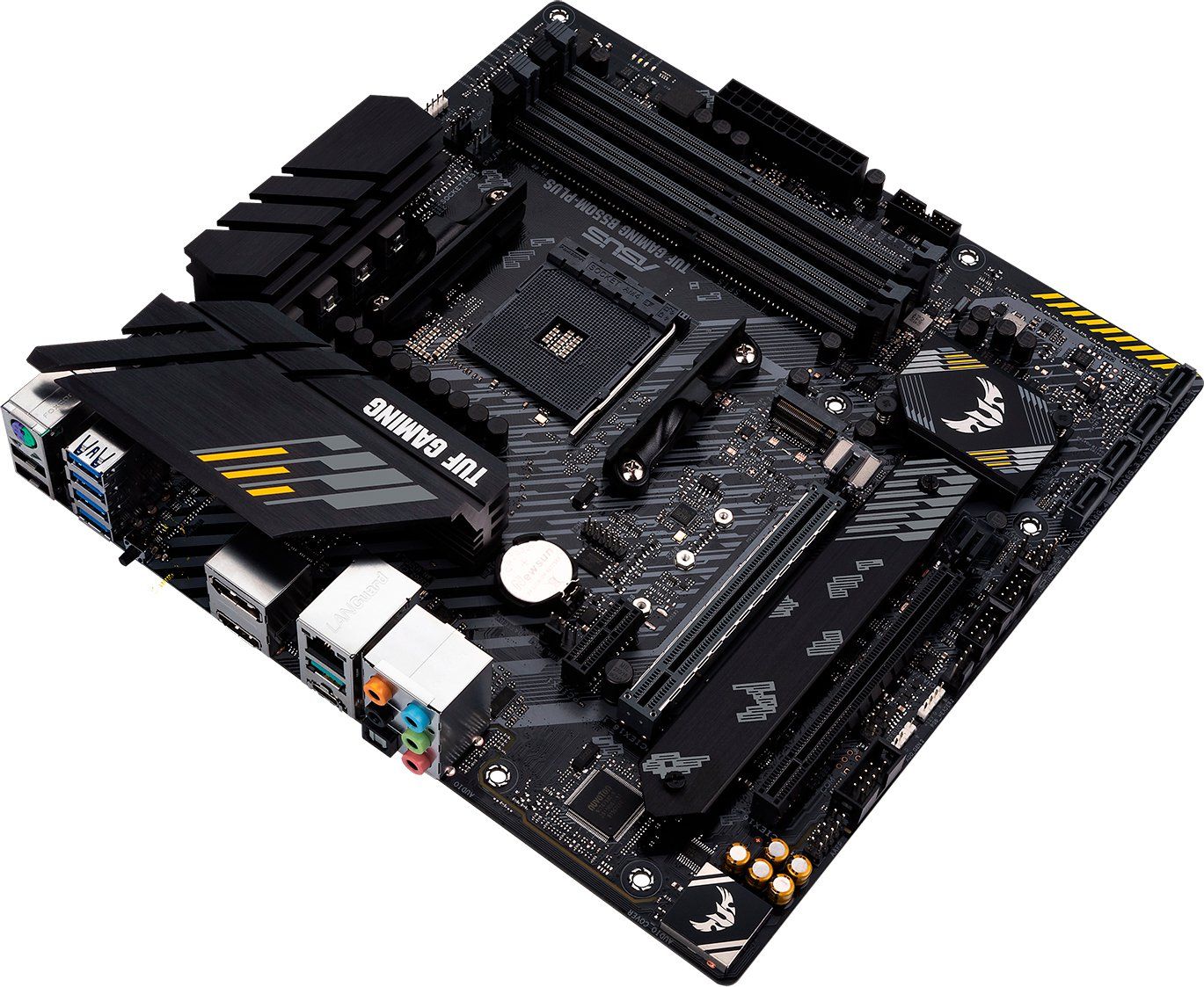 TUF Gaming B550M-Plus provides a complete, high-performance gaming package with a long list of features to improve your experience, including ultrafast networking for smoother online gameplay, pristine audio with positional cues for FPS gaming, and onboard RGB lighting that syncs with attached accessories to help you create a personalized gaming atmosphere.