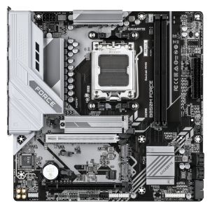 The GIGABYTE B850M FORCE is designed for compact, performance-oriented builds and delivers stable operation with modern hardware. It supports Ryzen 7000, 8000, and 9000 processors, along with high-frequency DDR5 memory. Three M.2 slots enable installation of advanced storage devices, including PCIe 5.0 SSDs. The board includes HDMI and DisplayPort outputs, as well as a reliable 2.5GbE network interface.