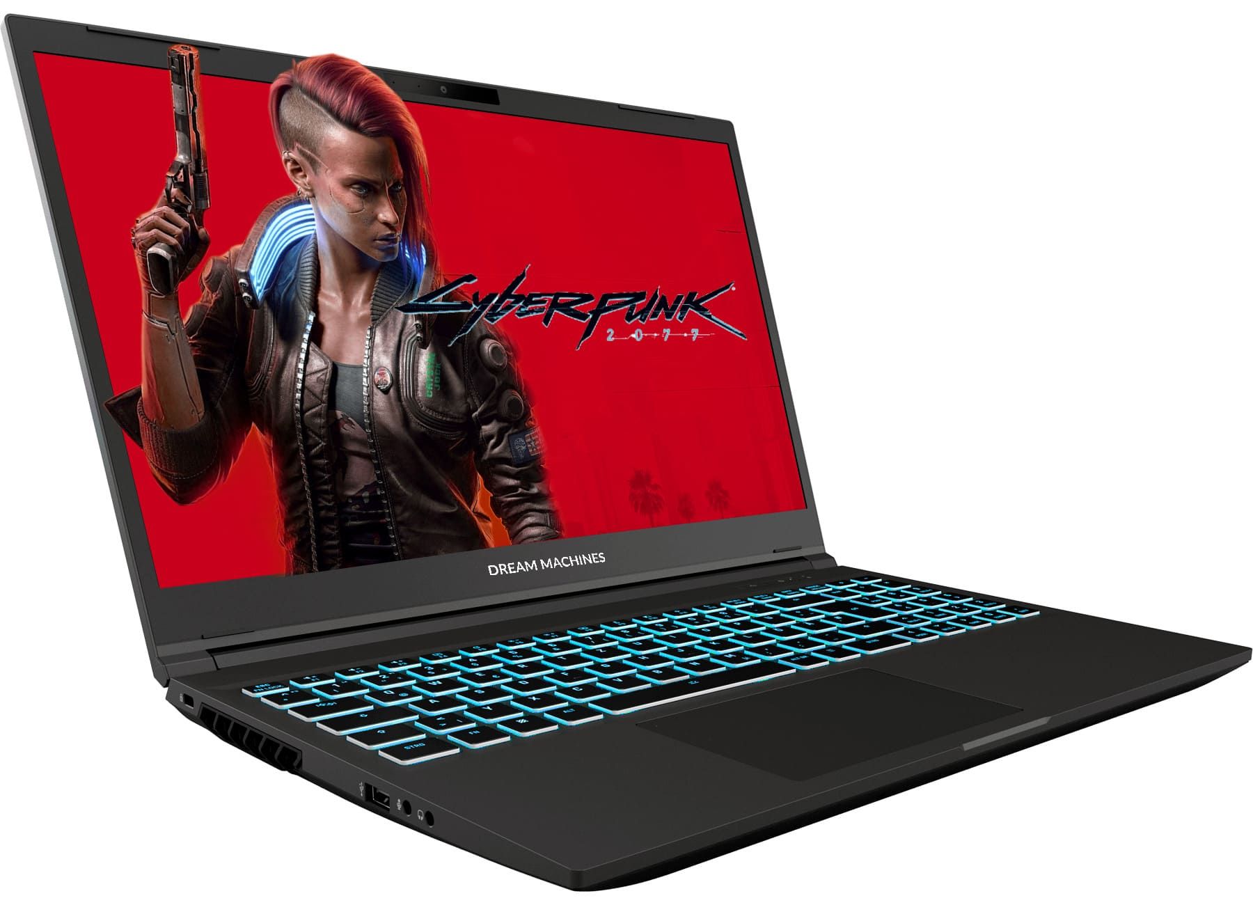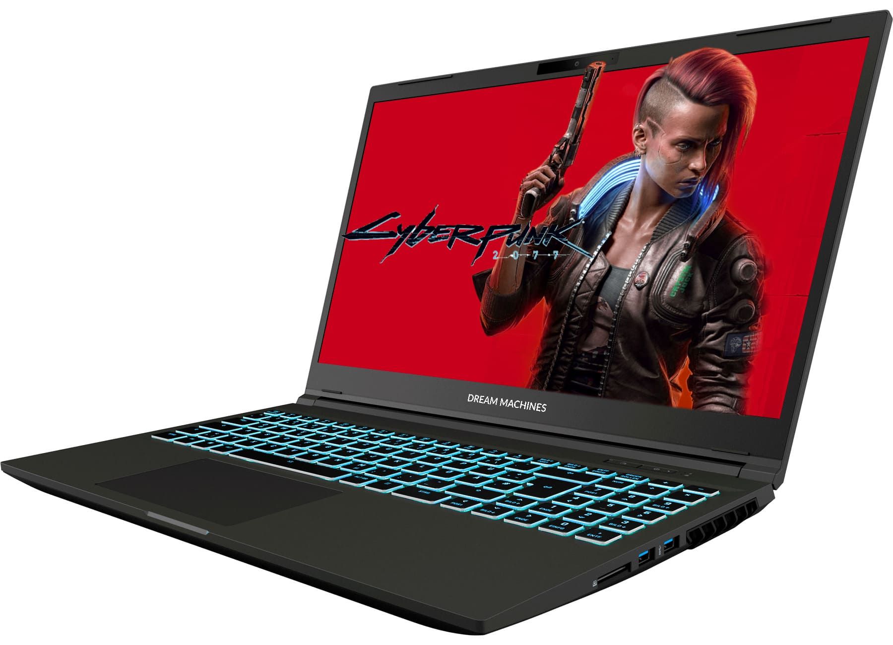 Dream Machines RG3050-15 (RG3050-15UA77) — black laptop with 15.6" IPS display for gaming and creative work.