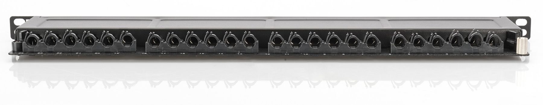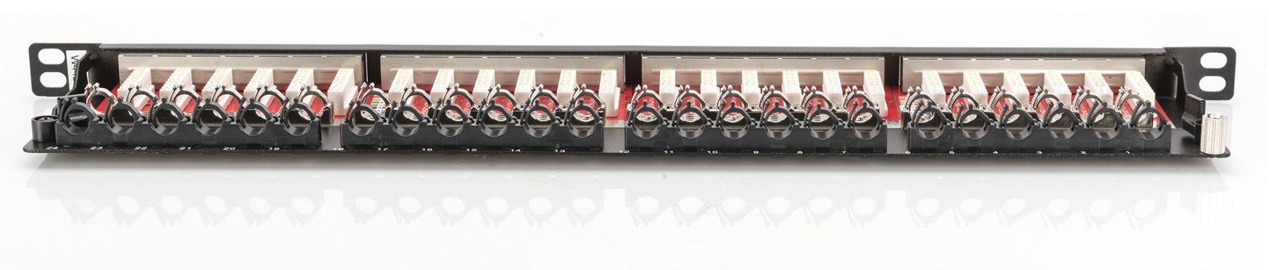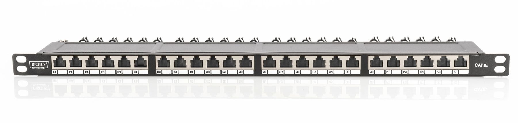 DIGITUS CAT 6A, Class EA High Density Patch Panel, shielded. CAT 6A Class EA patch panel, shielded, 0.5U 24-port RJ45, incl. dust cover, 8P8C, black. Save a lot of space (only 0.5U) - With shutters for dust protection - Best performance and link quality for your network. The DIGITUS 24-port 0.5U Patch Panel offers a high density. As the panel is only 0.5U in height, it allows to present 48 ports on 1U (2 panels with 24 ports each) which can be installed.