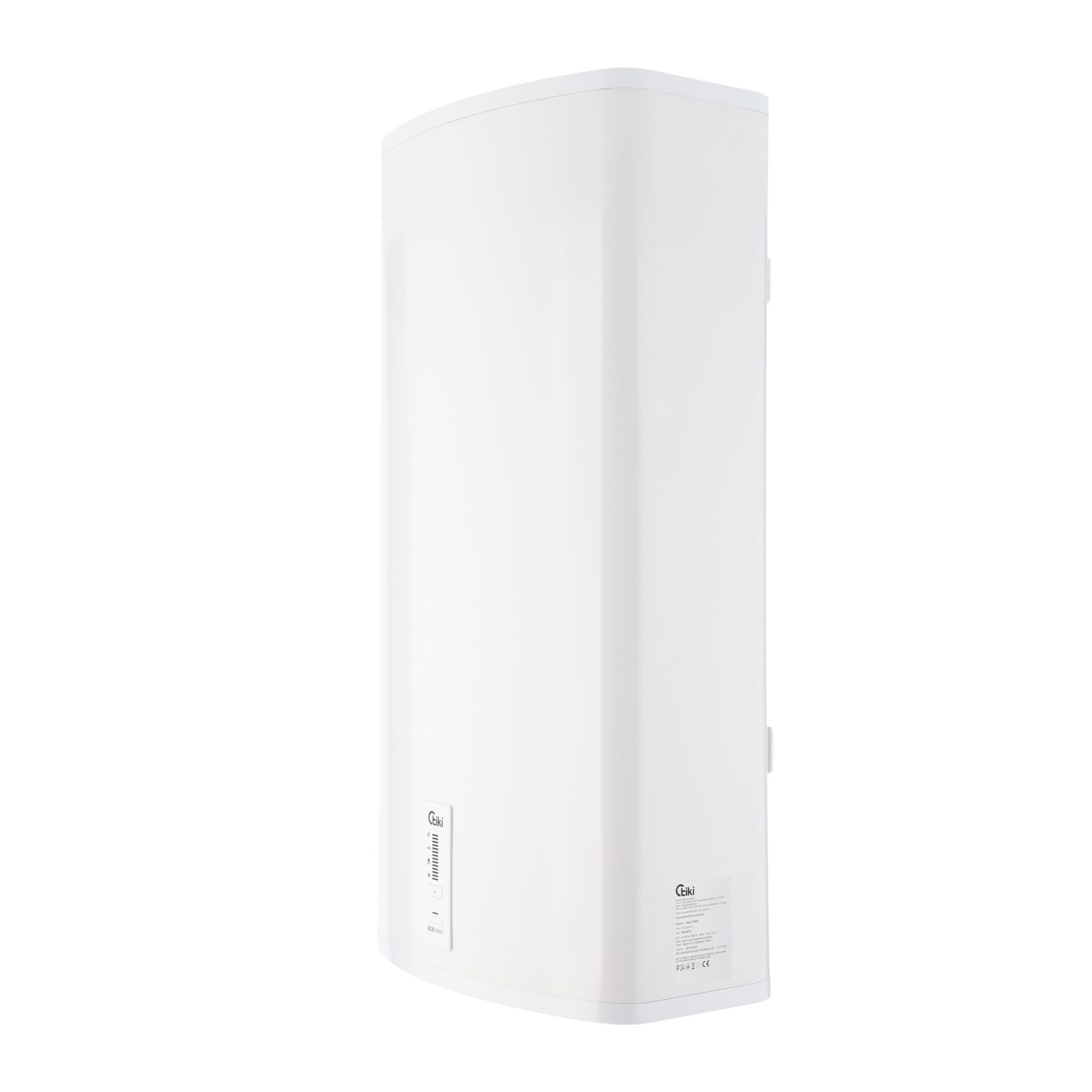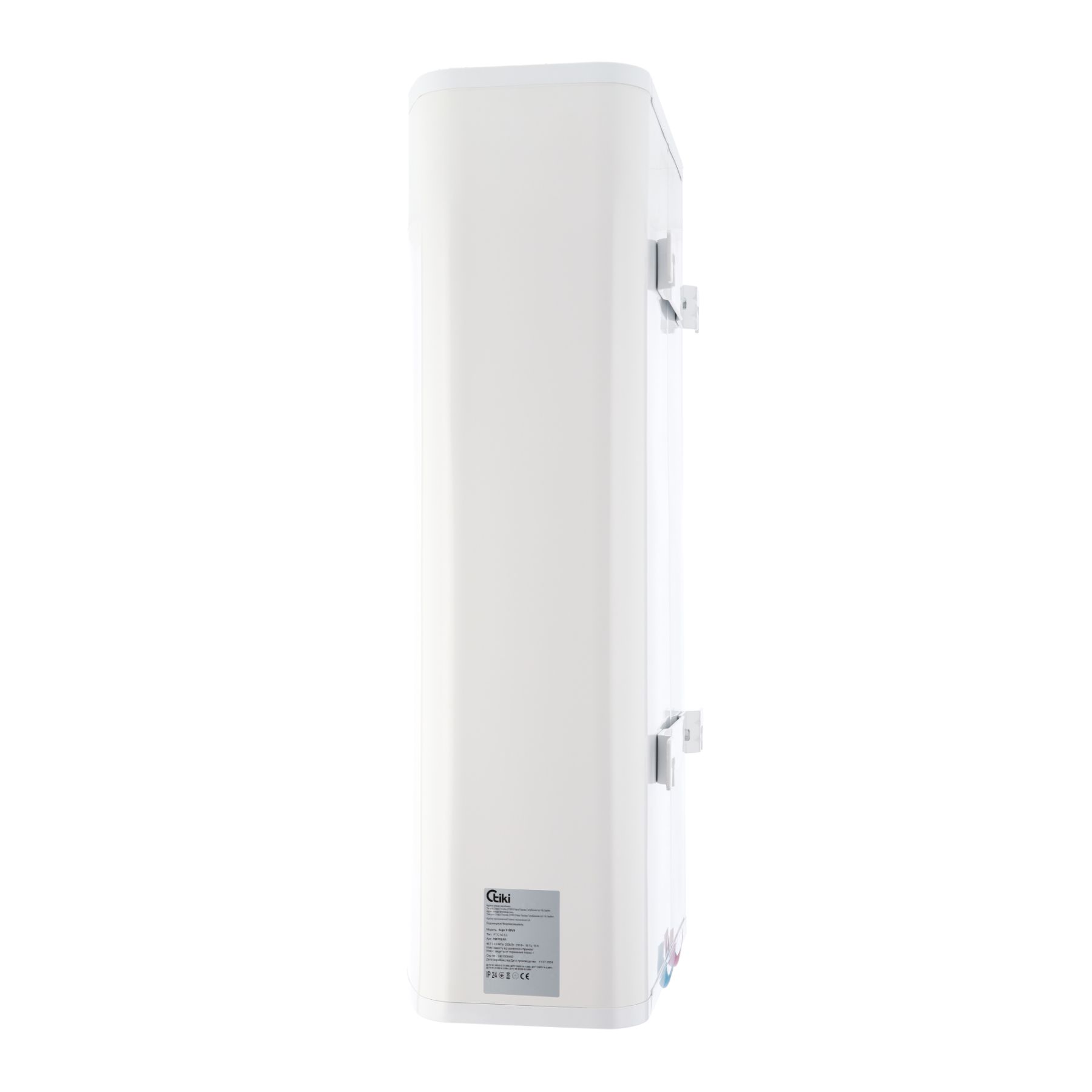 The TIKI Flat FTG 50-liter electric water heater is a modern and compact solution for household use. With a 2 kW power output, it provides quick water heating, and universal mounting allows for horizontal or vertical installation. Electronic controls offer precise temperature adjustment and added convenience. Energy efficiency class B ensures optimal electricity consumption. The sleek white flat design complements the interior and saves space.