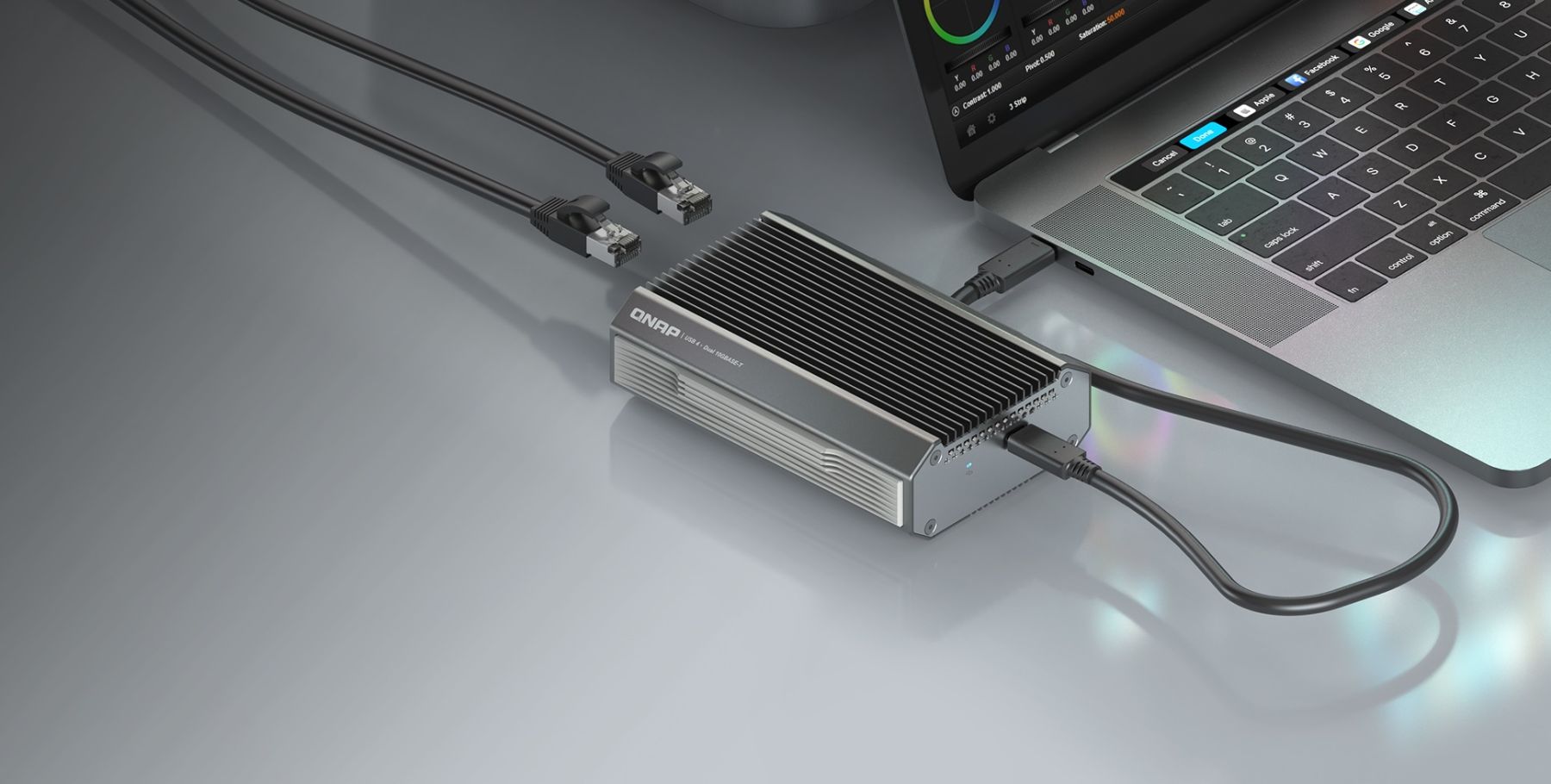 Просто підключіть QNA-UC10G2T до комп’ютера Mac або Windows за допомогою кабелю USB 4, що входить до комплекту, а адаптер – до комутатора 10GbE, NAS або іншого пристрою 10GbE за допомогою кабелю RJ45 Cat 5e, Cat 6, Cat 6a (або вище).