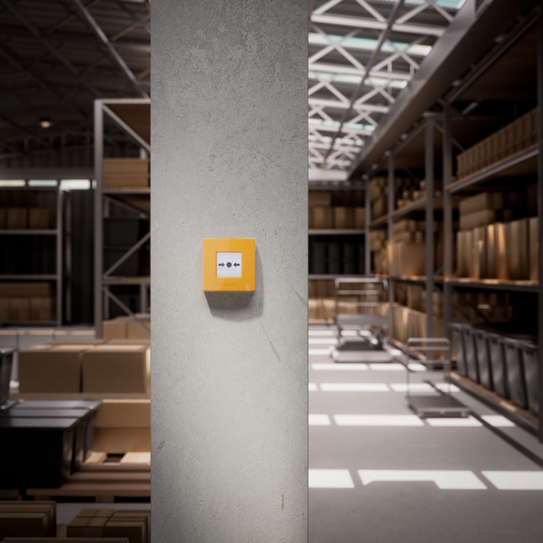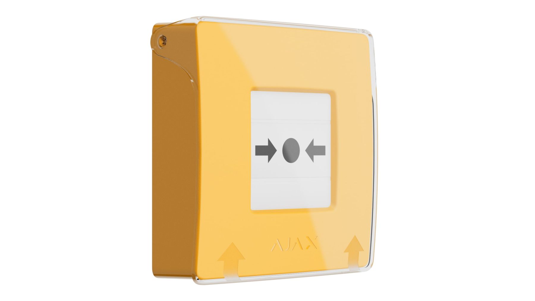 Бездротова настінна кнопка для активації пожежної тривоги вручну для житлових об'єктів Ajax Manual Call Point, jeweller, бездротовий, жовтий