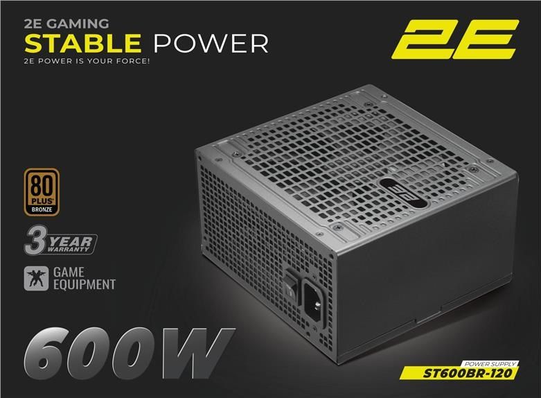 Блок живлення 2E GAMING Stable Power ATX3.1 (600W), >85%, 80+ Bronze, 120мм, 1xMB 24pin(20+4), 2xCPU 8pin(4+4), 3xMolex, 6xSATA, 2xPCIe 8pin(6+2)
