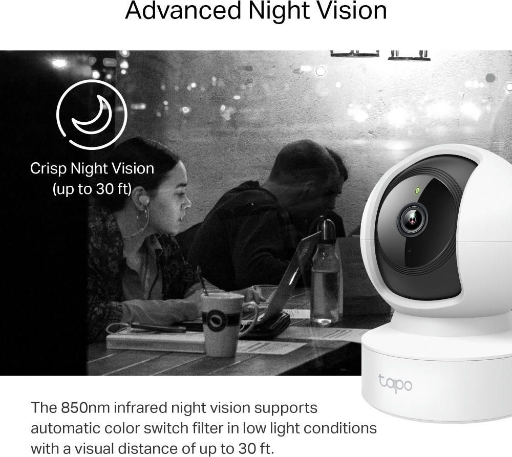 IP-камера TP-LINK Tapo C212 має роздільну здатність 3 мегапікселі та підтримує підключення через Wi-Fi стандарту N300. Вона оснащена функцією виявлення руху та має слот для карт пам'яті microSD для зберігання записів. Камера забезпечує надійний відеонагляд і легко встановлюється в домашній мережі.