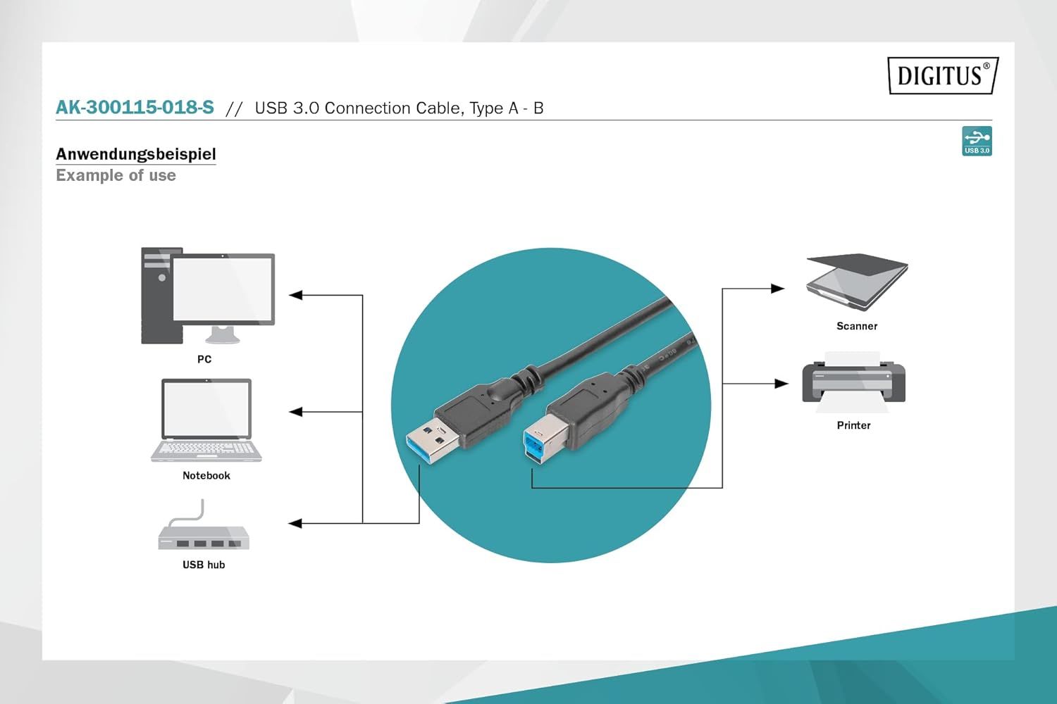 Кабель DIGITUS USB 3.0 (AM/BM) – це практичне рішення для тих, хто цінує швидкість, надійність і стабільність роботи периферійних пристроїв.