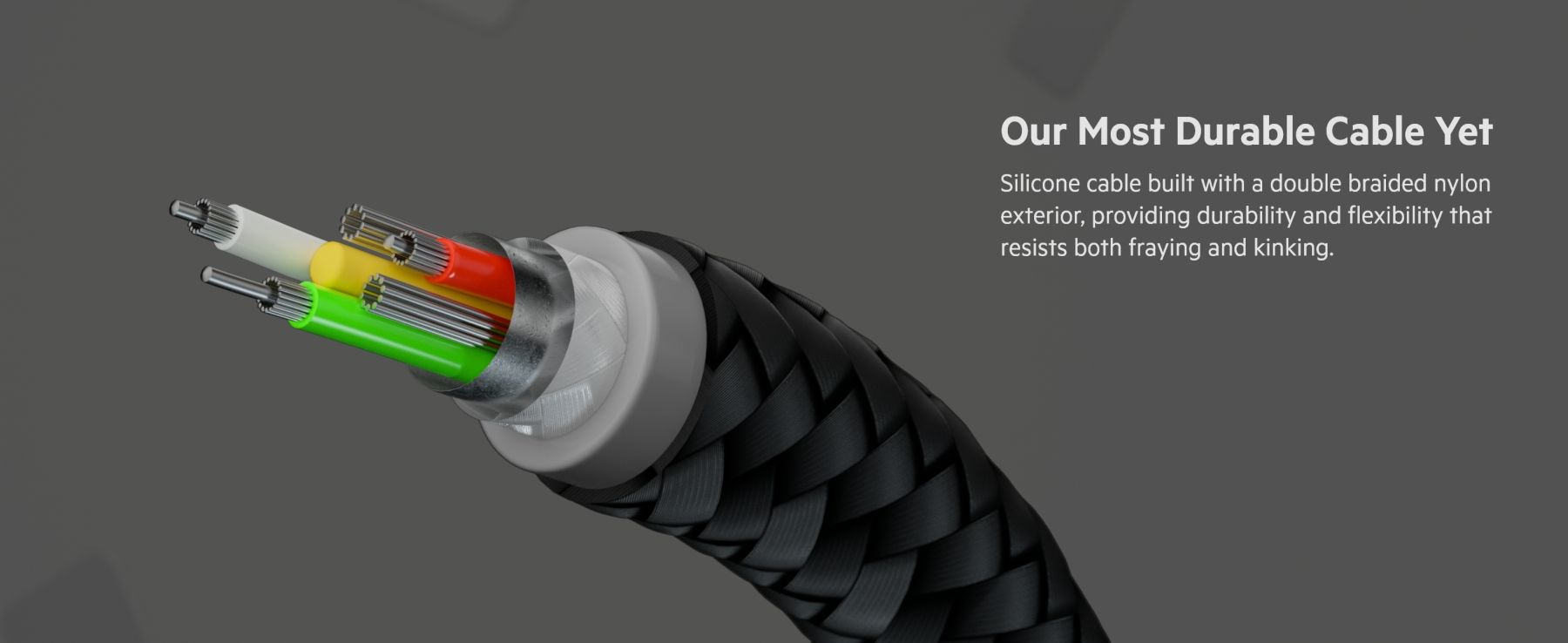 Наші кабелі BOOST CHARGE PRO Flex із силіконовою оплеткою поєднують у собі надгнучкість та довговічність. Насправді, вони в 30 разів довговічніші, ніж звичайні кабелі, і створені, щоб протистояти сплутуванню та зносу. Цей кабель USB-C — USB-C сумісний із USB-C PD та підтримує швидку зарядку від 0 до 50 % за 26 хвилин. Легко зберігати та монтувати його в будь-якому місці завдяки магнітній системі керування кабелем. Пропонується у трьох варіантах довжини та чотирьох стильних кольорах.