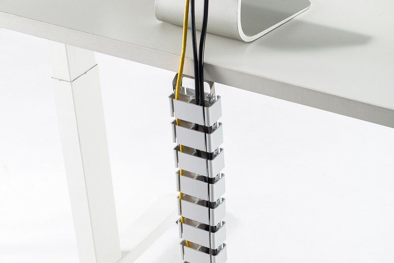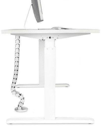Коли стіл із регульованою висотою опускається, прокладка кабелю акуратно складається, не плутаючись і не спричиняючи плутанину кабелів.
