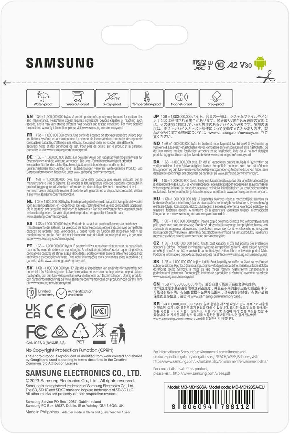 Карта постачається із 10-річною гарантією від Samsung, що підтверджує її надійність і довговічність.