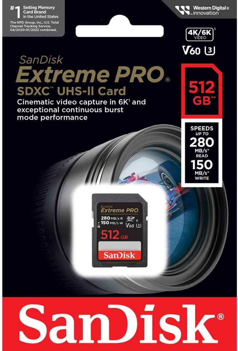 Карта пам'яті SanDisk SD 512GB Extreme Pro V60 - це високопродуктивний пристрій, створений для професійних фотографів та відеооператорів. Завдяки інтерфейсу UHS-II та класу швидкості U3, ця карта забезпечує надзвичайно високу швидкість передачі даних, що дозволяє знімати відео у форматі 4K UHD без затримок. Основні характеристики: