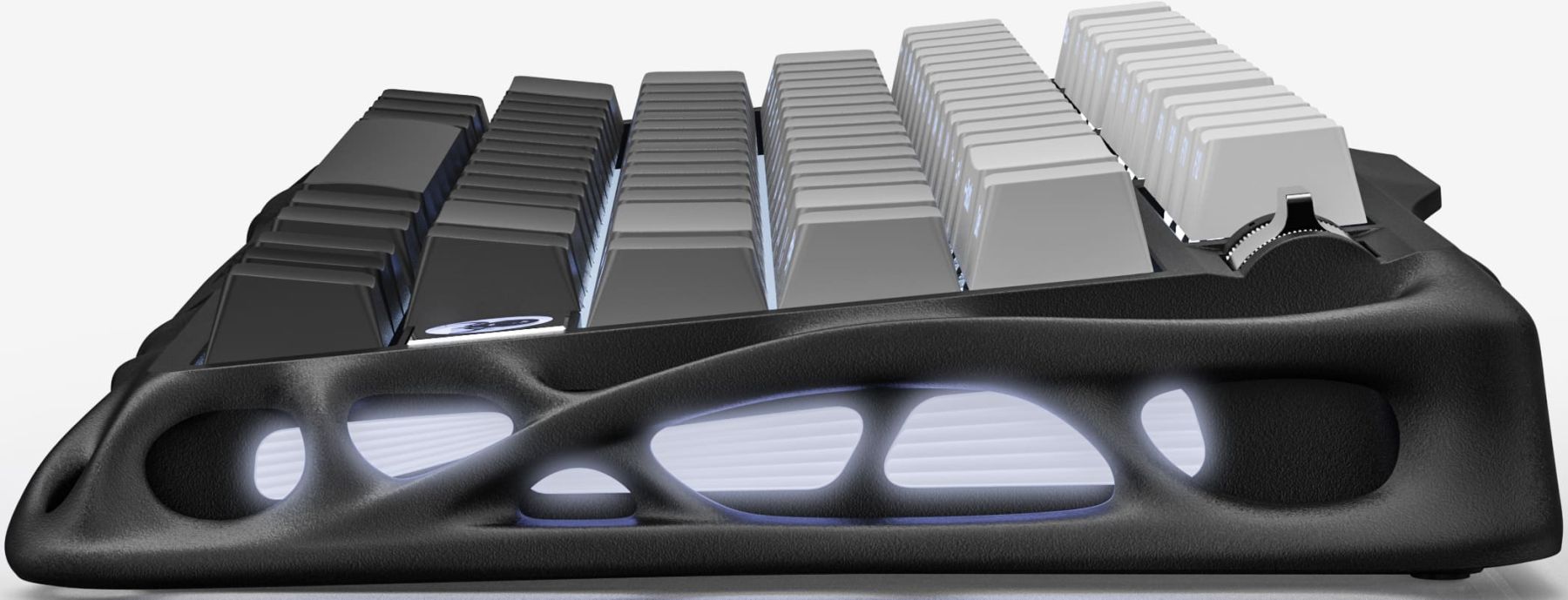 Mercury K1 - це баланс у всьому, міцність і легкість у кожному вигині його екзоскелета з алюмінієвого сплаву. Обтічна металева рама витримує кожне натискання клавіш, забезпечуючи симетричну стійкість, яка ідеально підходить для інтенсивних ігор і комфортного набору тексту.