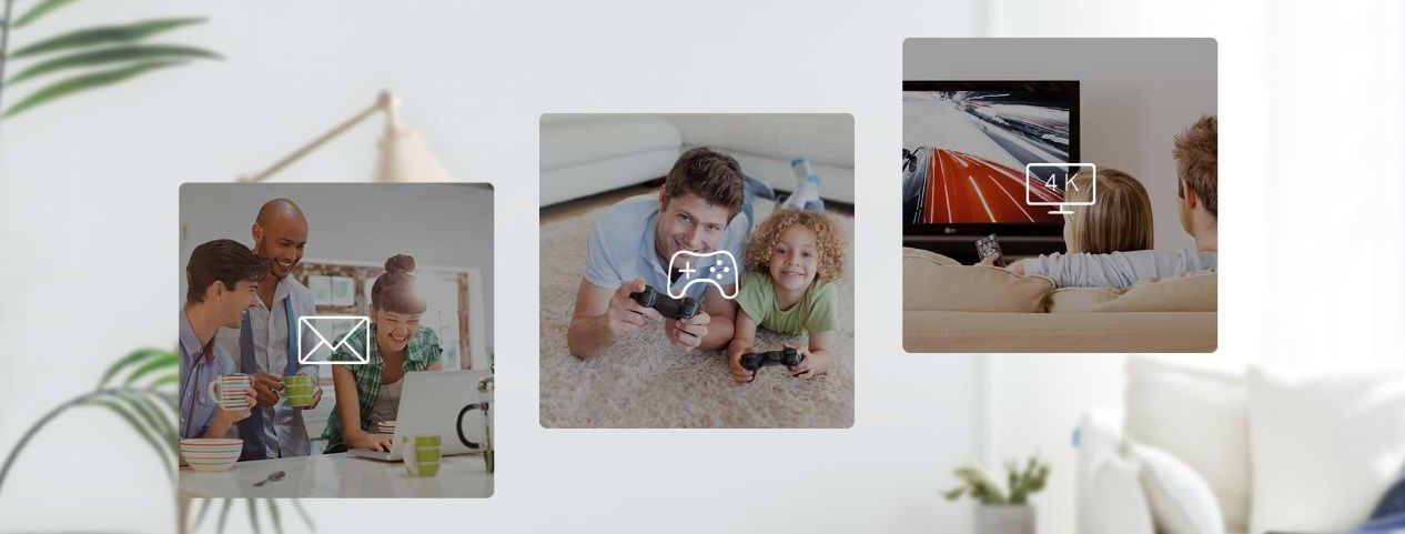- 3 × гігабітні порти - забезпечують безпечні дротові мережі для настільних ПК, smart-телевізорів або ігрових консолей.