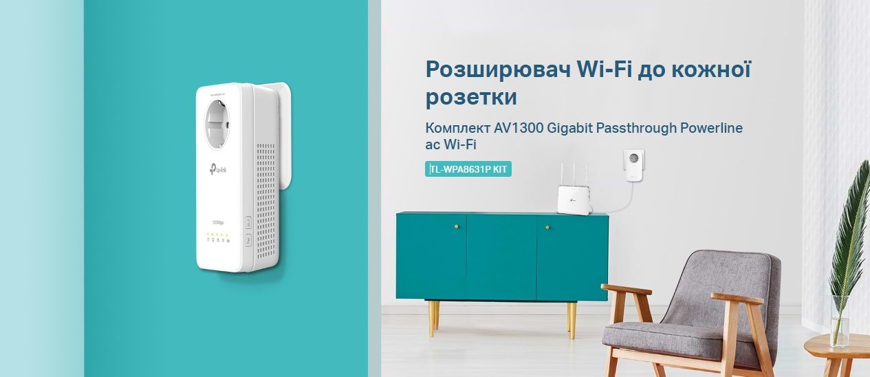 TL-WPA8631P KIT Комплект AV1300 Gigabit Passthrough Powerline Wi-Fi АС стандарту