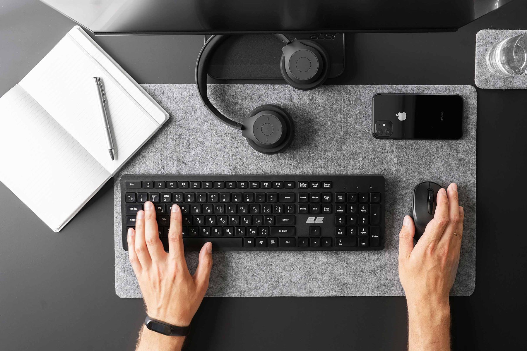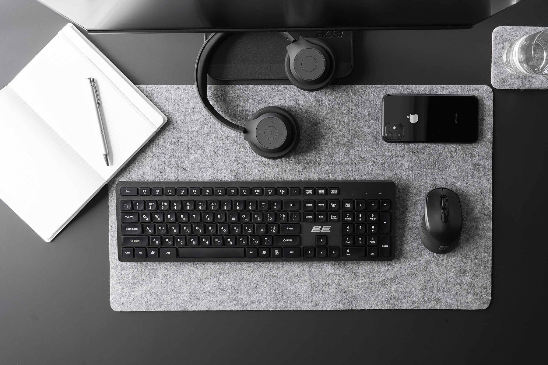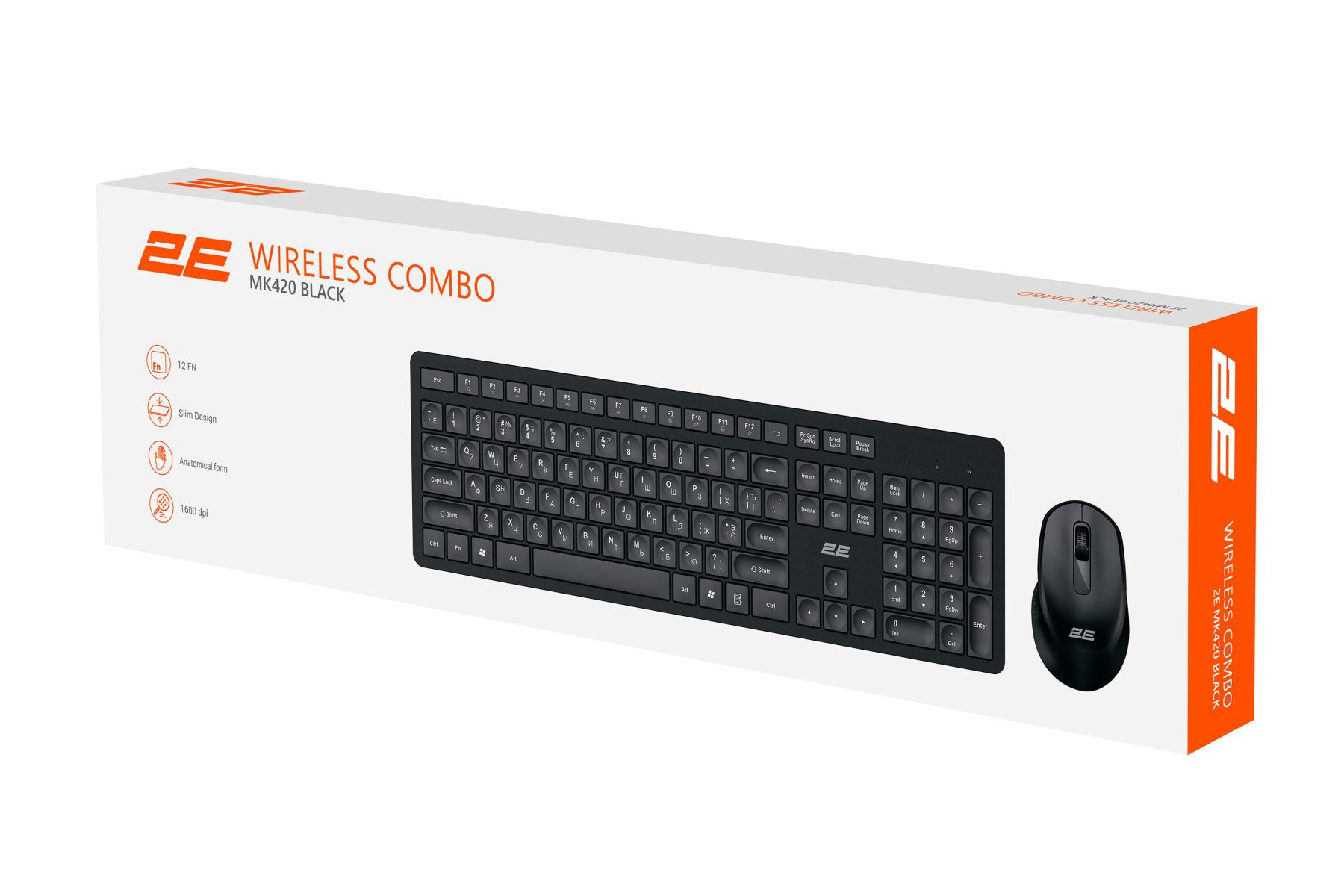 Комплект клавіатура та миша 2E MK420 WL, EN/UK/RU, чорний