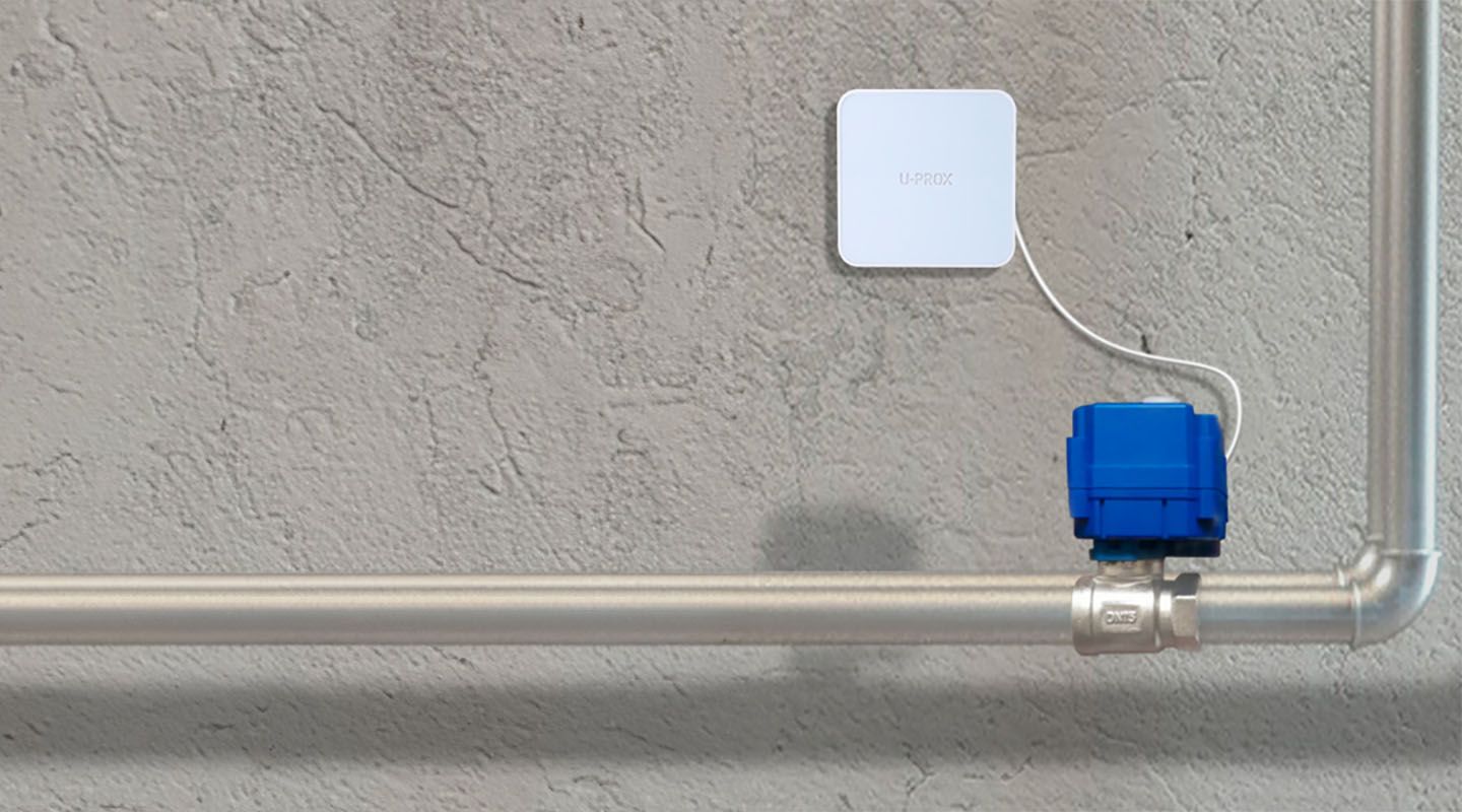 U-Prox Valve DN15 – бездротовий електропривід для керування кульовим клапаном DN15. Забезпечує автоматичне перекриття або відкриття водопостачання за сигналом системи безпеки або протікання. Працює від зовнішнього живлення та має резервне живлення для автономної роботи. Надійний у використанні, підтримує ручне управління і виявлення несправностей.