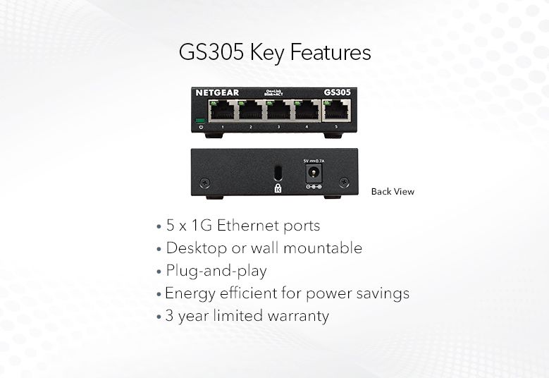 Комутатор NETGEAR GS305 5xGE, Некерований