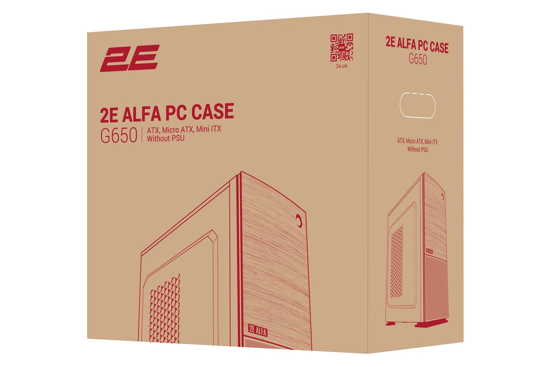 2E ALFA G650 для складання універсальної домашньої або офісної системи, а також бюджетної середнього рівня робочої станції. Корпус надає можливості монтажу достатньої кількості накопичувачів та численних плат розширення (7 слотів розширення), відеоадаптера довжиною до 280 мм. У корпусі передбачено простір для акуратного розміщення кабелів, можна встановити чотири вентилятора, 120 радіатор рідинного охолодження на задню панель, охолодження для процесора висотою не більше 158 мм.