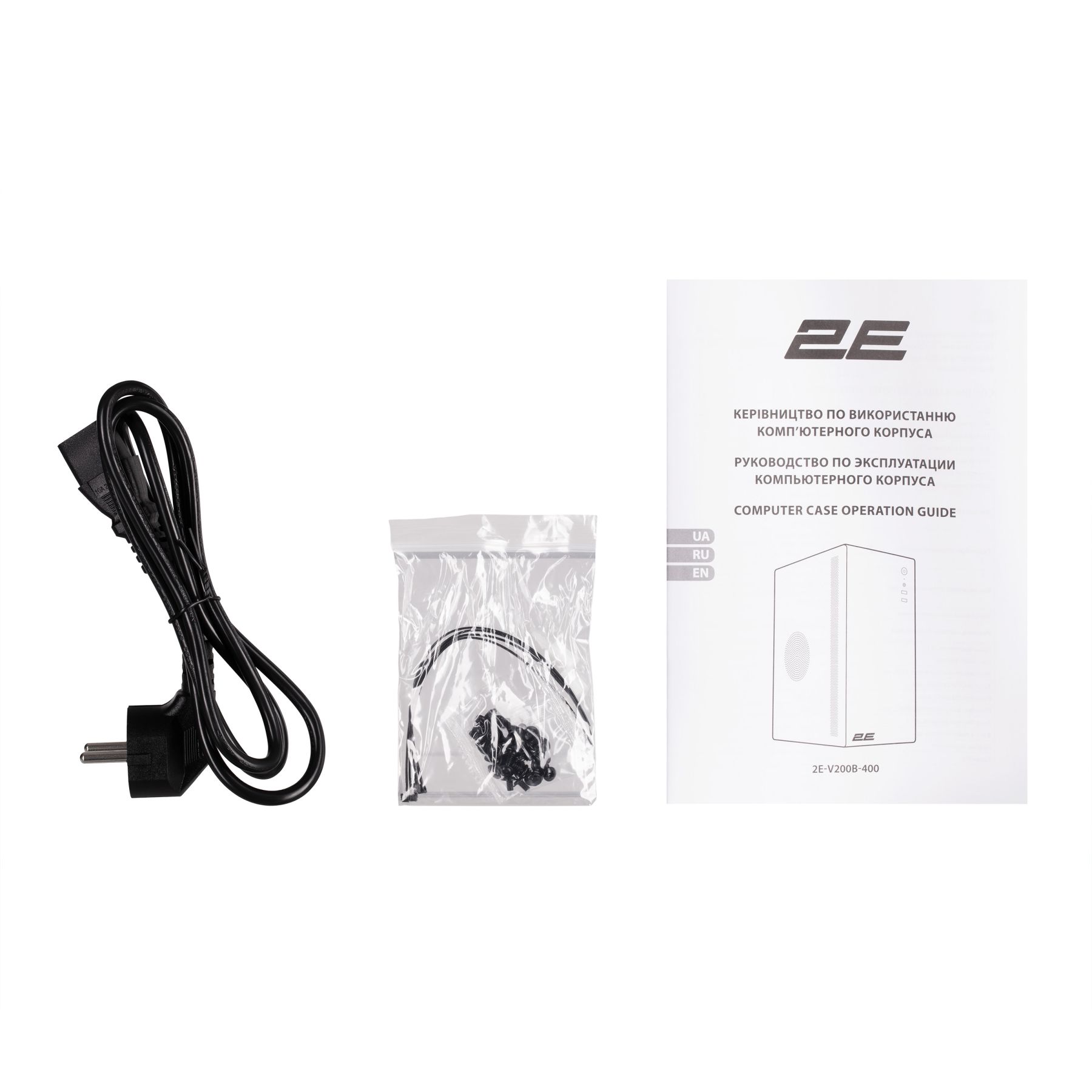Корпус 2E Credo V200B-400 з БЖ 2E ATX400, 2xUSB3.0, 1x80мм, VGA 250мм, mATX, чорний