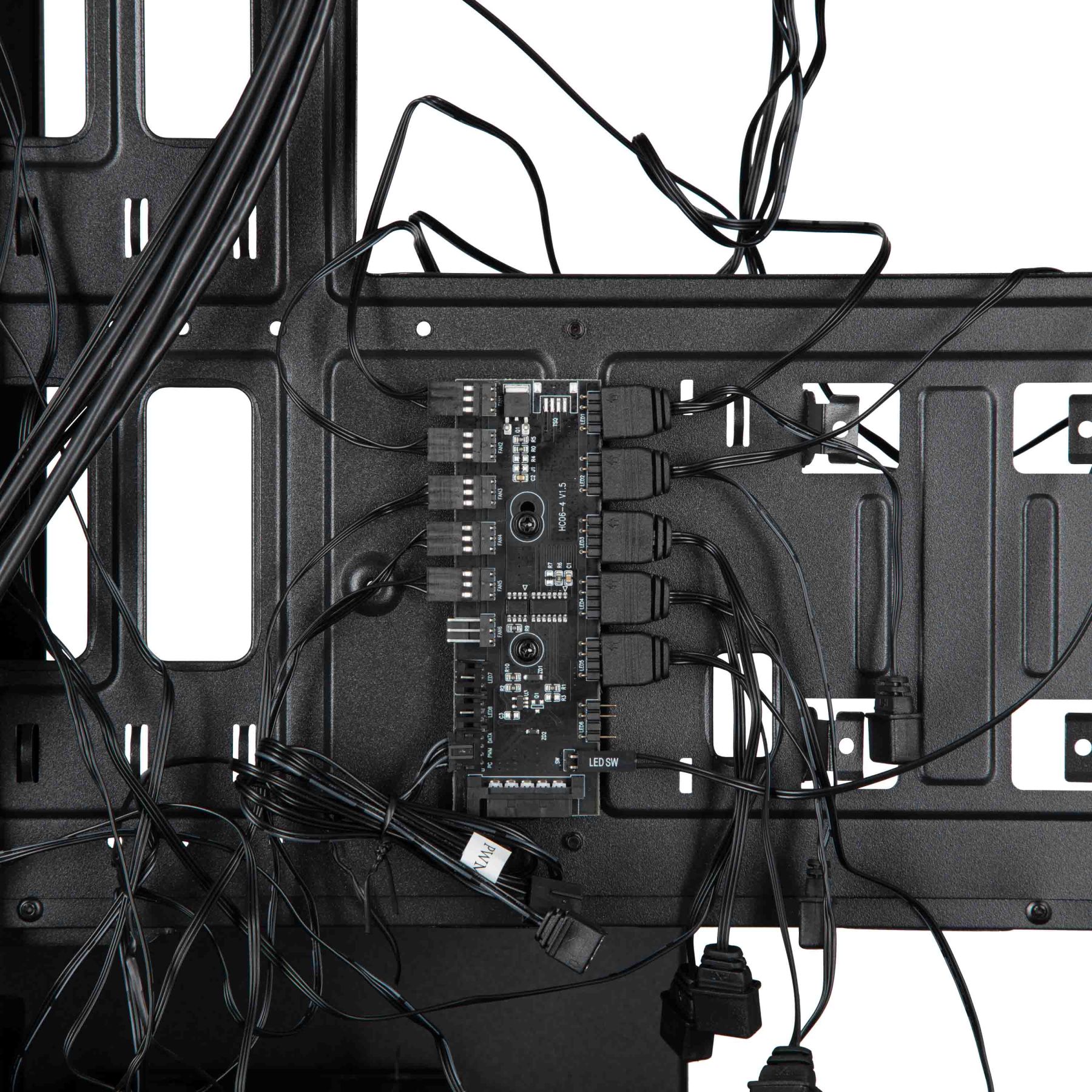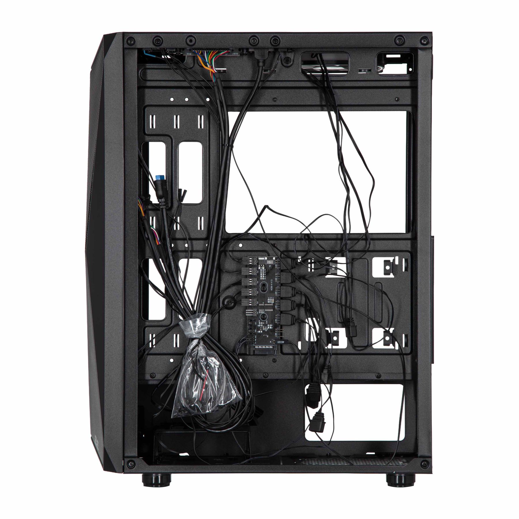 Для підключення, управління та контролю за комп'ютерною периферією та підсвічуванням, в арсеналі корпусу присутні роз'єми 1xUSB3.0, 2xUSB2.0, HD AUDIO+MIC, кнопки та індикатори Power, Reset, LED, HDD LED. В комплекті 5 х 120мм ARGB вентилятори, що підключені до концентратору.