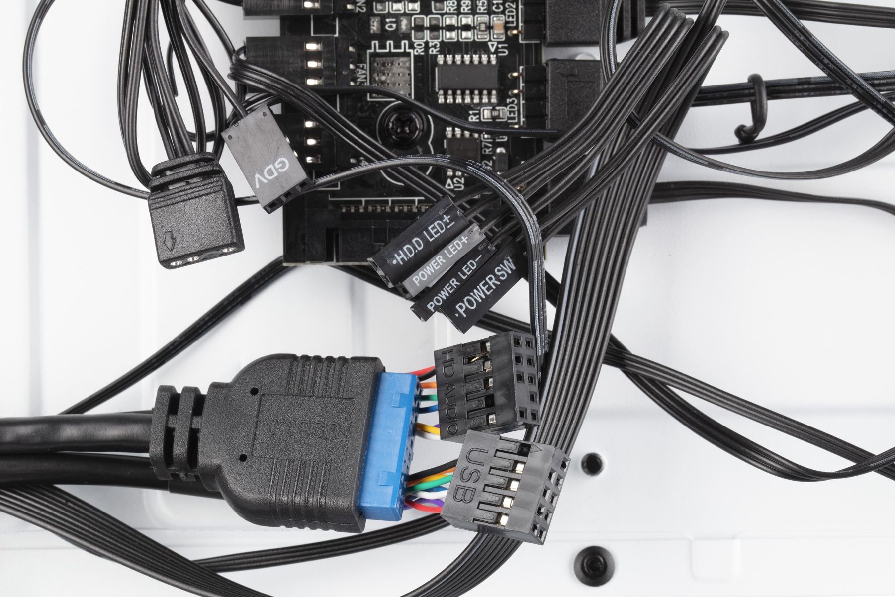 Для підключення, керування та контролю за комп'ютерною периферією та підсвічуванням, в арсеналі корпусу є роз'єми 2xUSB 3.0,1xUSB 2.0 HD AUDIO+MIC, кнопки та індикатори Power, Reset, Power LED, HDD LED, додатково ARGB концентратор з можливістю підключення до материнської плати.