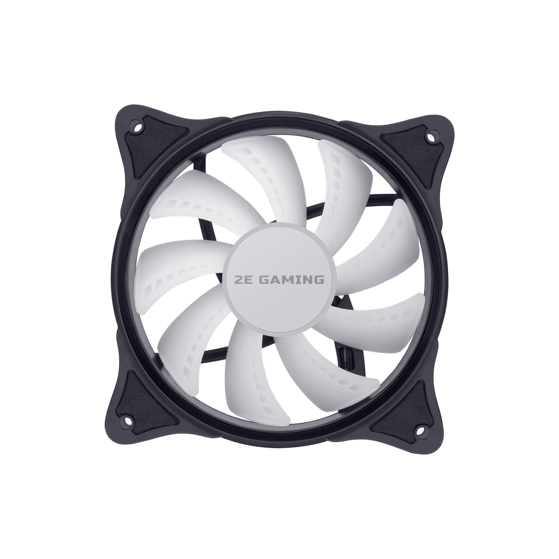 2E Gaming F120IR-ARGB – класичний 120мм вентилятор 2510-4PIN/+ 5V 3PIN RGB з білими лопатями та керованим RGB підсвічуванням. З чотирьох сторін розміщені антивібраційні накладки. Сучасний матеріал накладок – силікон не деформується при нагріванні, гасить вібрацію, еластичний та витривалий до різного роду навантажень. Вентилятор на підшипнику ковзання, працює тихо при максимальній частоті обертів 1200±10% об/хв. ARGB підсвічення розподіллено по внутрішній частини вентилятора.