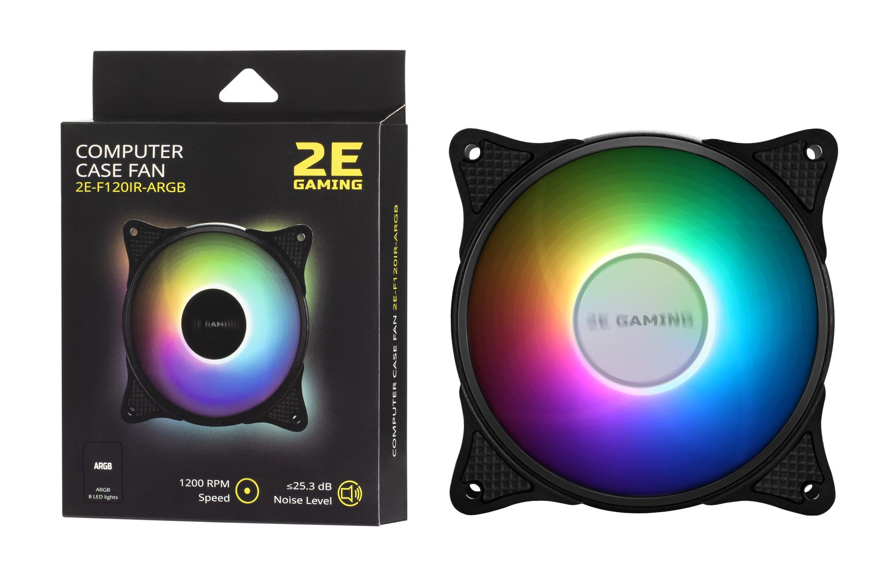 Корпусний вентилятор 2E GAMING F120IR-ARGB, 120мм, 1200rpm, 3pin, 3pin +5VARGB, 25.3dBa, чорний