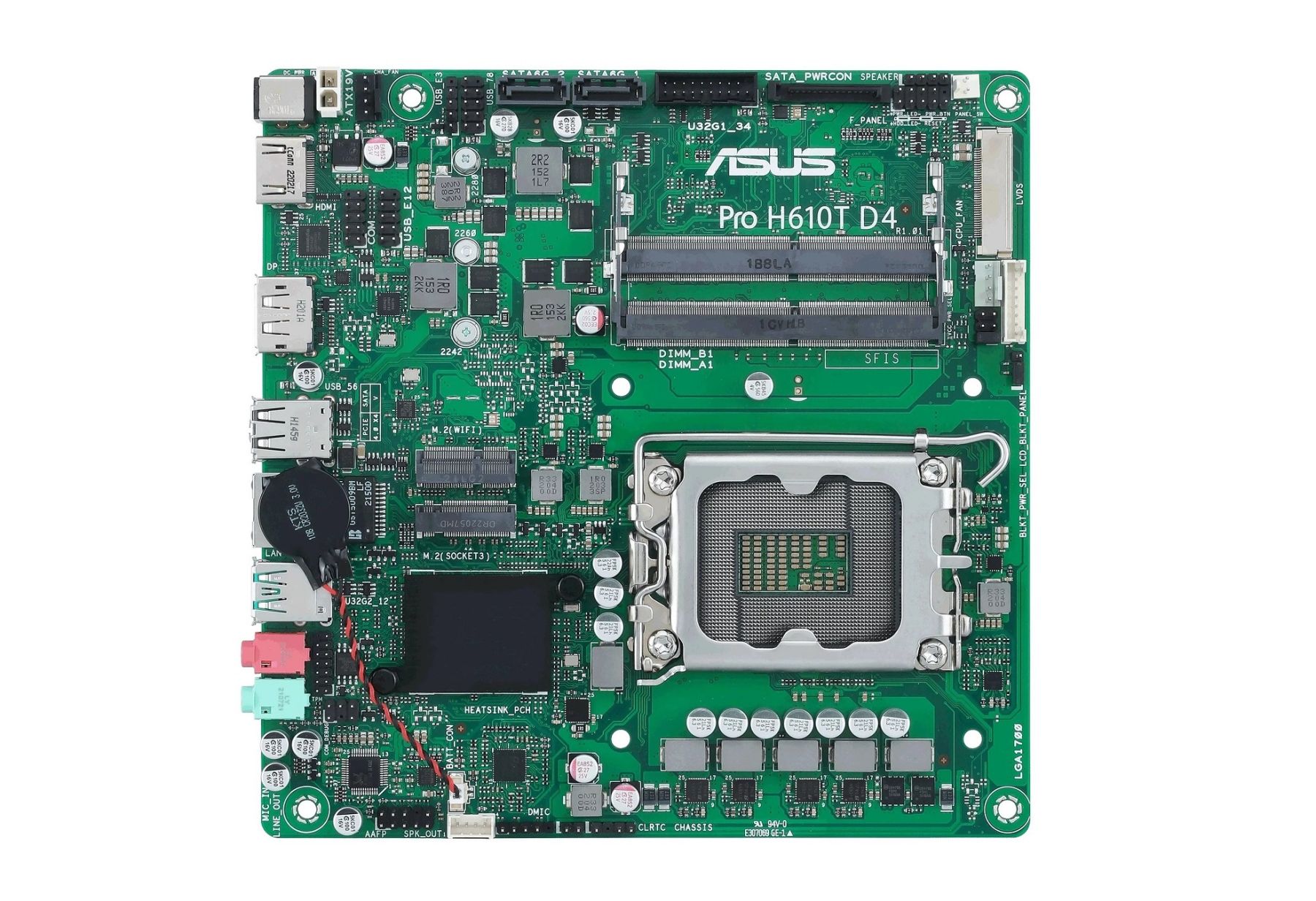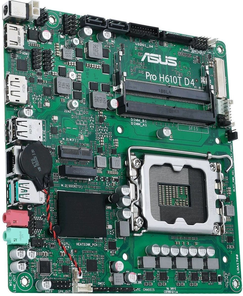 Материнcька плата ASUS PRO H610T D4-CSM s1700 H610 2xDDR4 M.2 HDMI DP LVDS Thin mITX