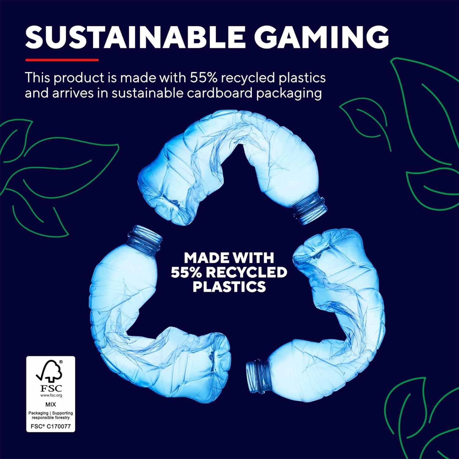 Особливості:Тефлонові накладки, на 55 % виготовлений із переробленого пластику, перемикачі Kailh витримують до 80 мільйонів натискань, повне RGB-підсвічування 3 зон з 16,8 мільйона колірних комбінацій для стильної гри