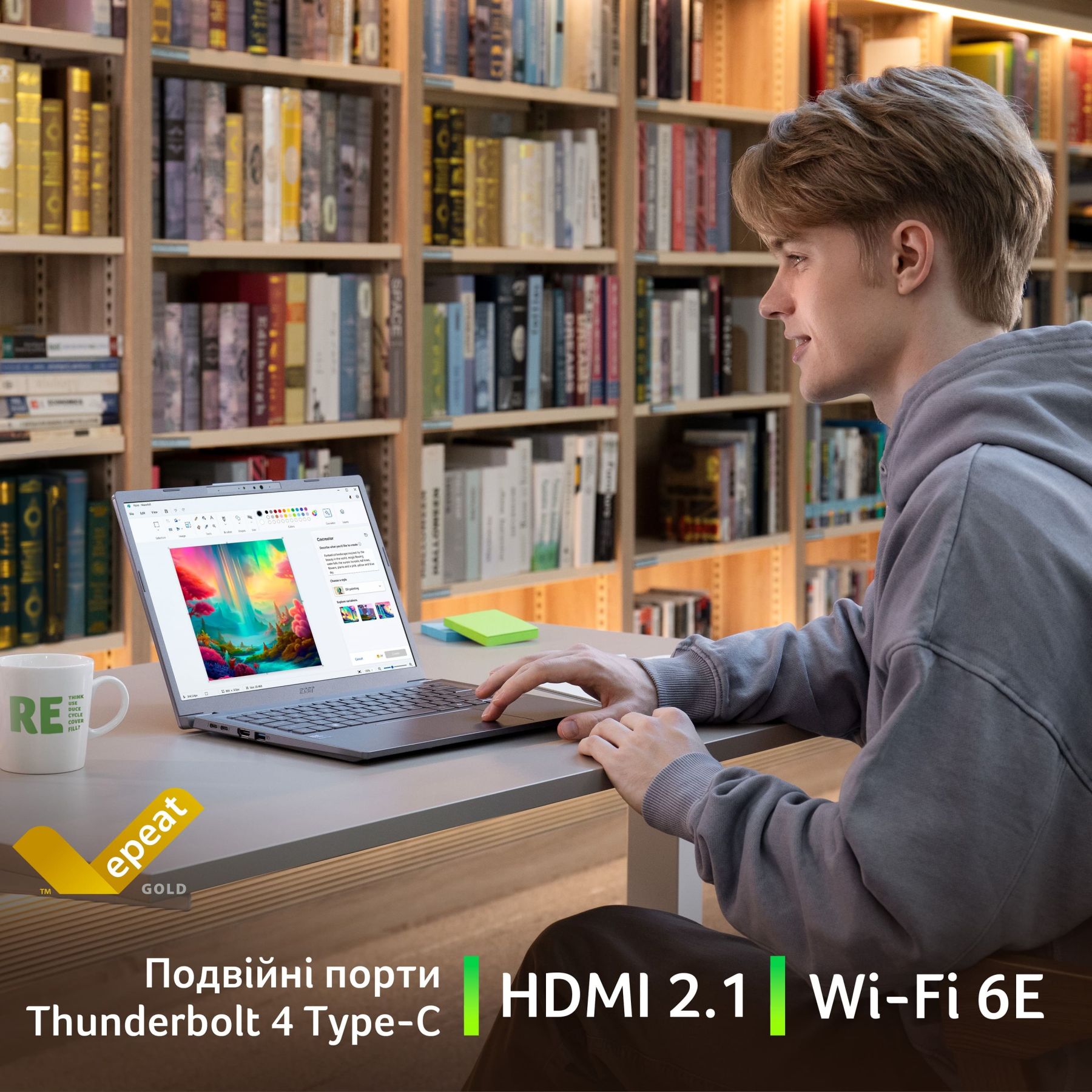 14-дюймовий OLED-дисплей з роздільною здатністю WUXGA (1920x1200) передає насичені кольори, глибокий чорний та вражаючий контраст. Це ідеальний вибір для перегляду мультимедіа, обробки фото або роботи з візуальним контентом.