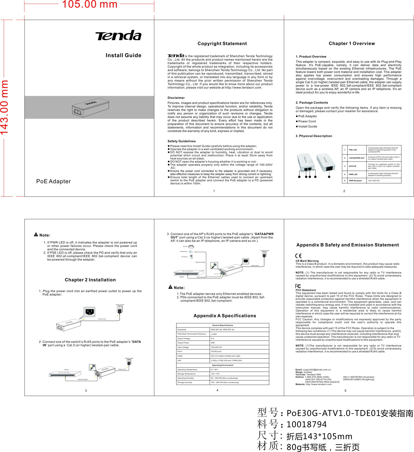 PoE-iнжектор TENDA 1xGE, 1xGE PoE, 30W Tenda PoE30G-AT