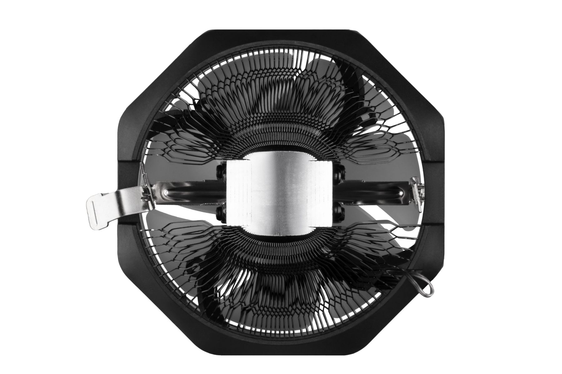 Алюмінієвий радіатор із спеціальним чорним покриттям із керамічними частками, для ефективного відводу тепла. Вигнута заокруглена форма пластин сприяє створенню активного повітряного потоку. Ідеально відшіфована алюмінієва основа для забезпечення максимального контакту із процесором.