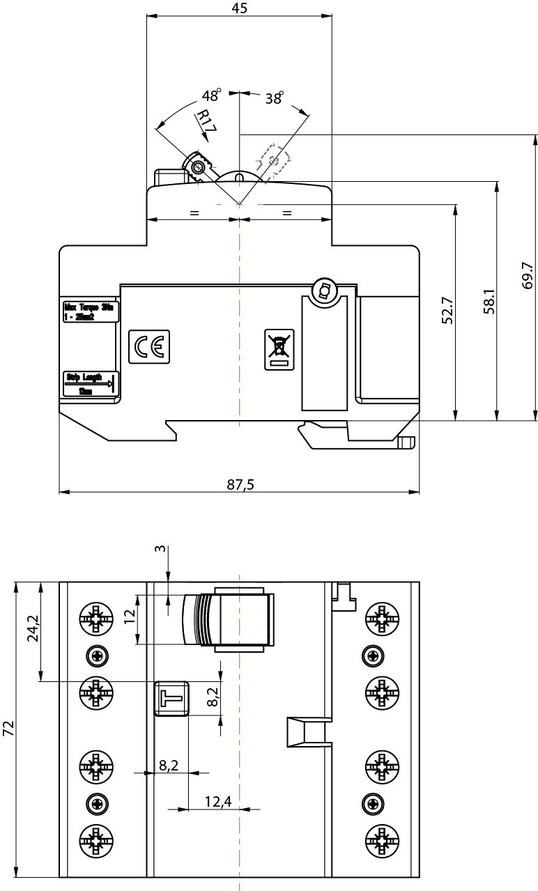 Особливості:ширина за кількістю модулів: 4, імпульсна міцність: