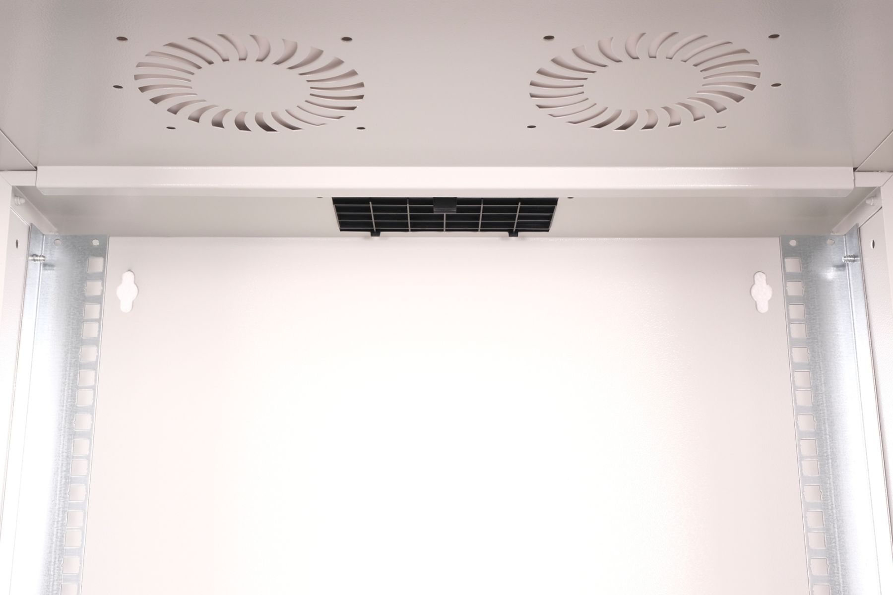 Шафа формату 19” серії SOHO PRO, висота 7U, максимальне навантаження 60 кг, передні перфоровані металеві двері зі змінним напрямком відкривання, кабельні вводи зверху та знизу, регульовані по глибині монтажні рейки, постачання в пласкій упаковці для зручного транспортування.