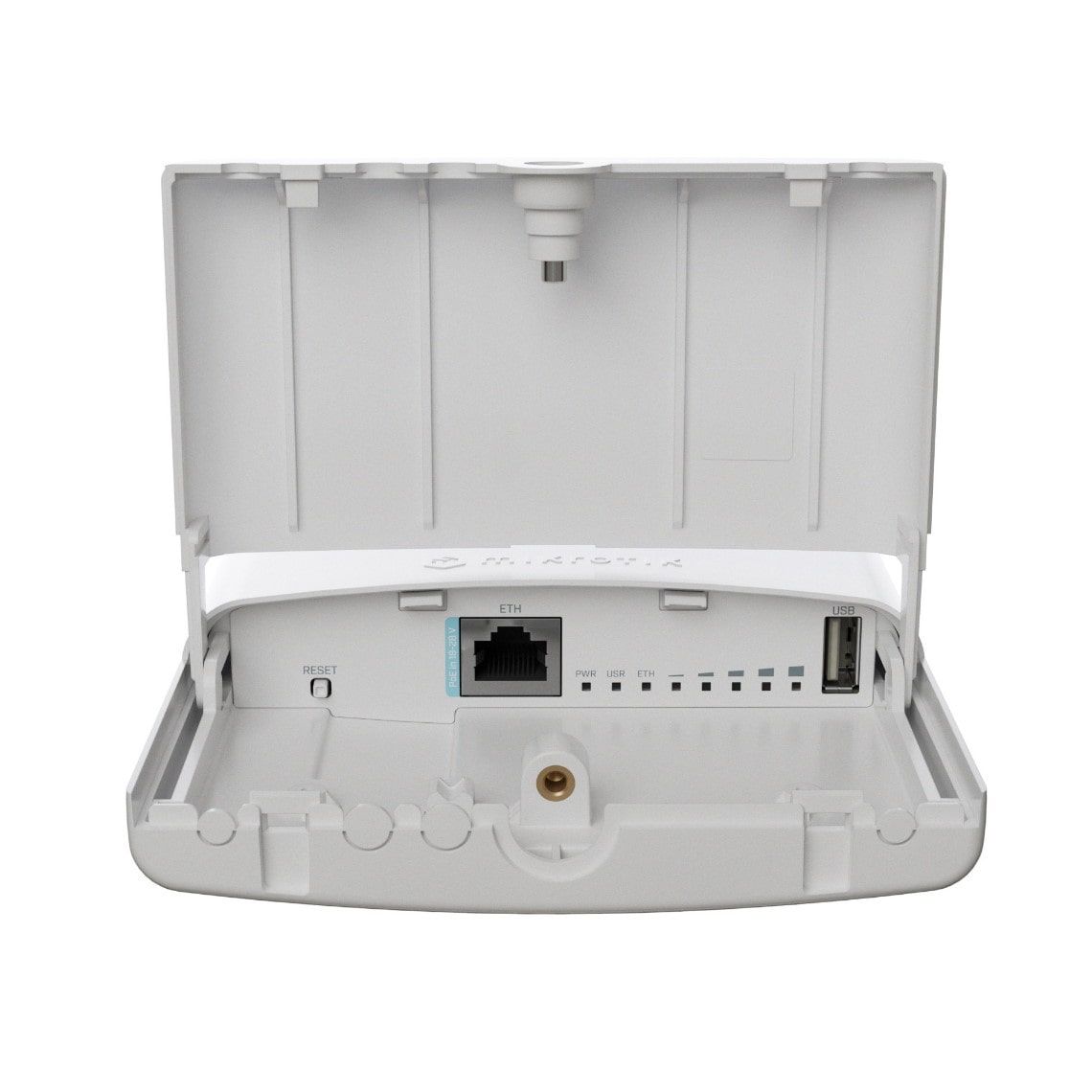Корпус розроблено, щоб полегшити життя системним адміністраторам. Кейс можна легко відкрити однією рукою. Внизу, заховані за захисними дверцятами, ви знайдете виходи для Ethernet. Оснащений монтажною петлею для легкого встановлення на опорі/стійці, а також має окреме кріплення на DIN-рейку.