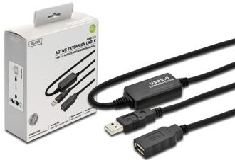 Кабель DIGITUS USB-A (M/F) зарядки/синхронизации, 10м, активный, черный