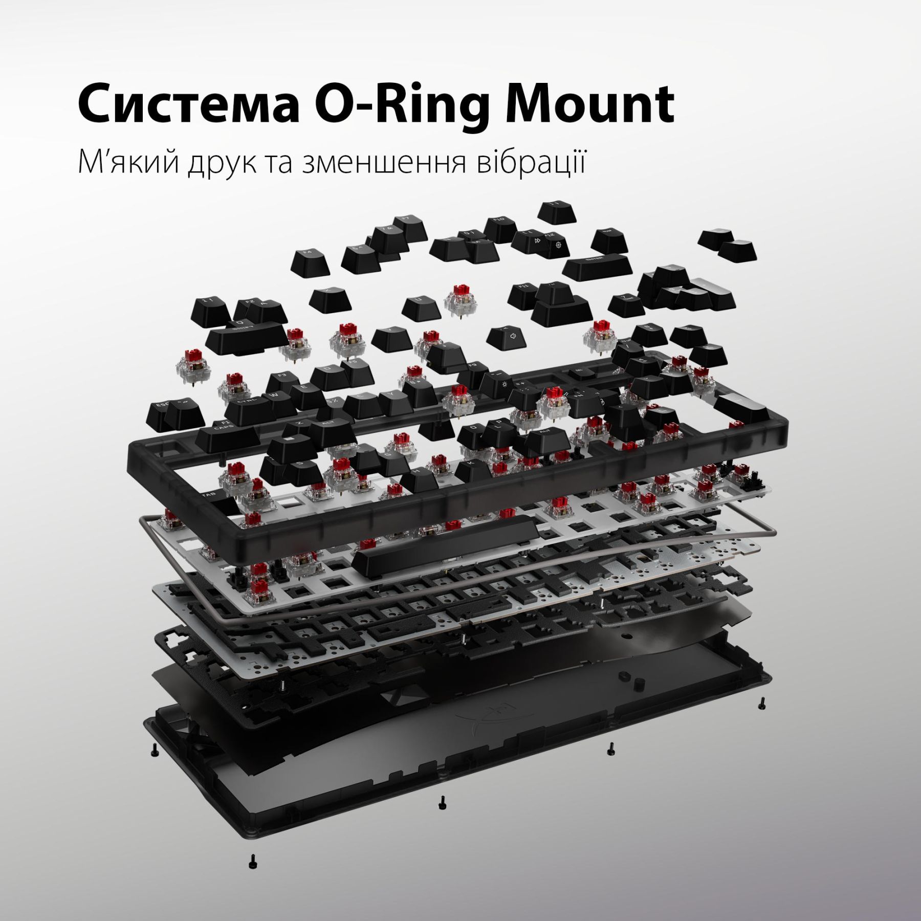 Конструкция с O-ring, поликарбонатной пластиной и силиконовым демпфером снижает вибрации и резонанс.