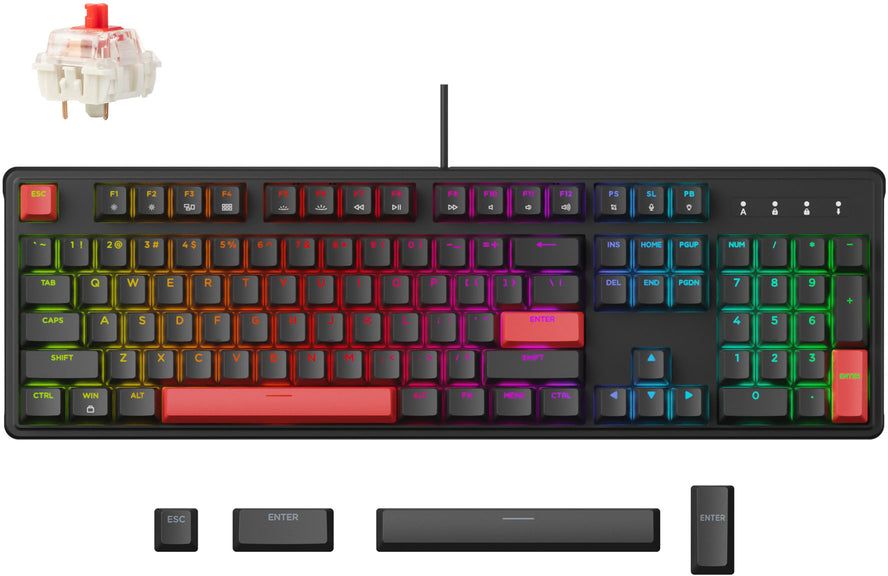 Более 14 разновидностей красных огней / 22+ RGB-подсветки и различные стили (например, мигающий, дышащий и статичный) помогут вам подобрать подходящее настроение. Прозрачные клавиши в сочетании с боковой подсветкой идеально подходят для работы или игр поздним вечером.