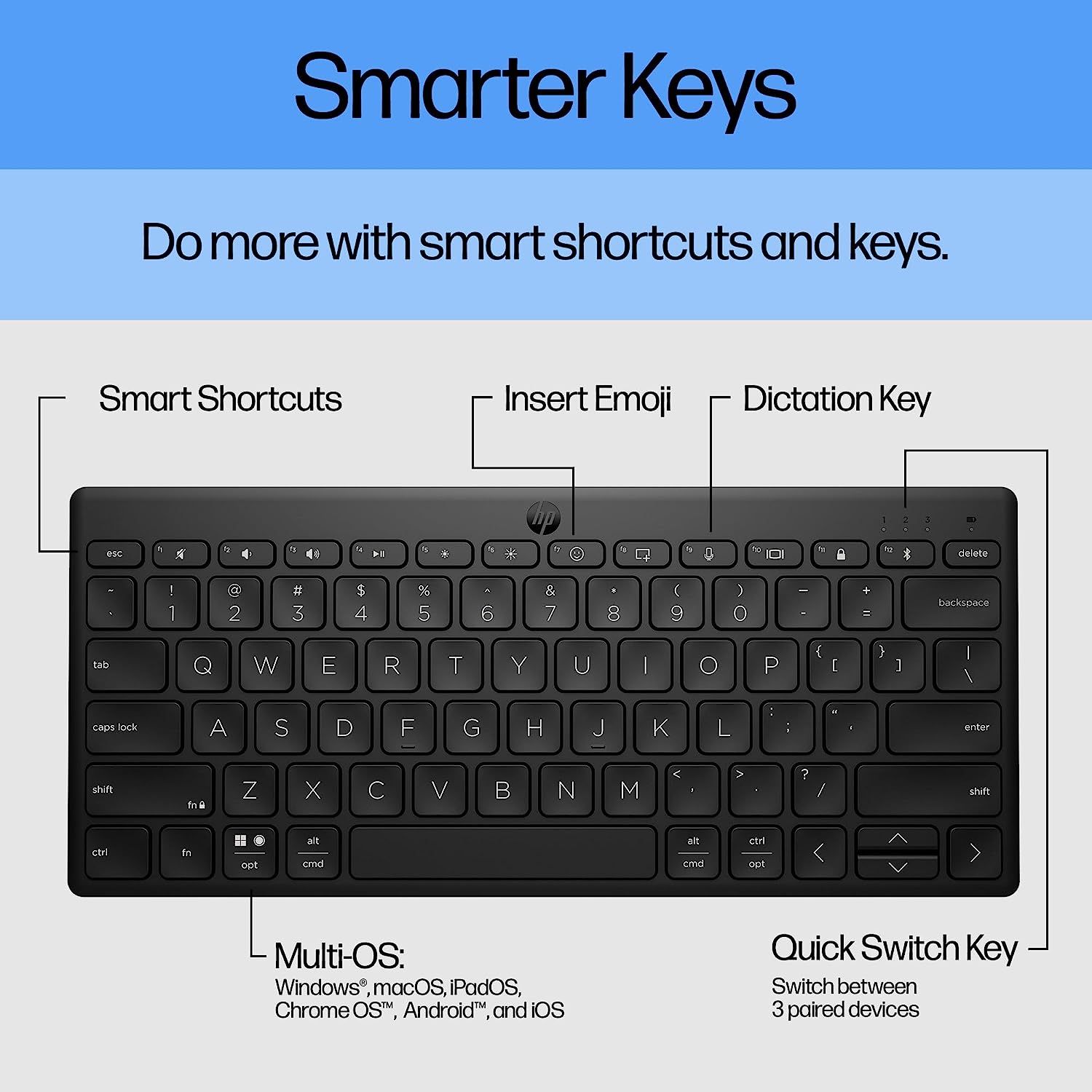 Клавиатура мембранная HP 350 Compact Multi-Device, 78key, BT, EN/UK, чёрный